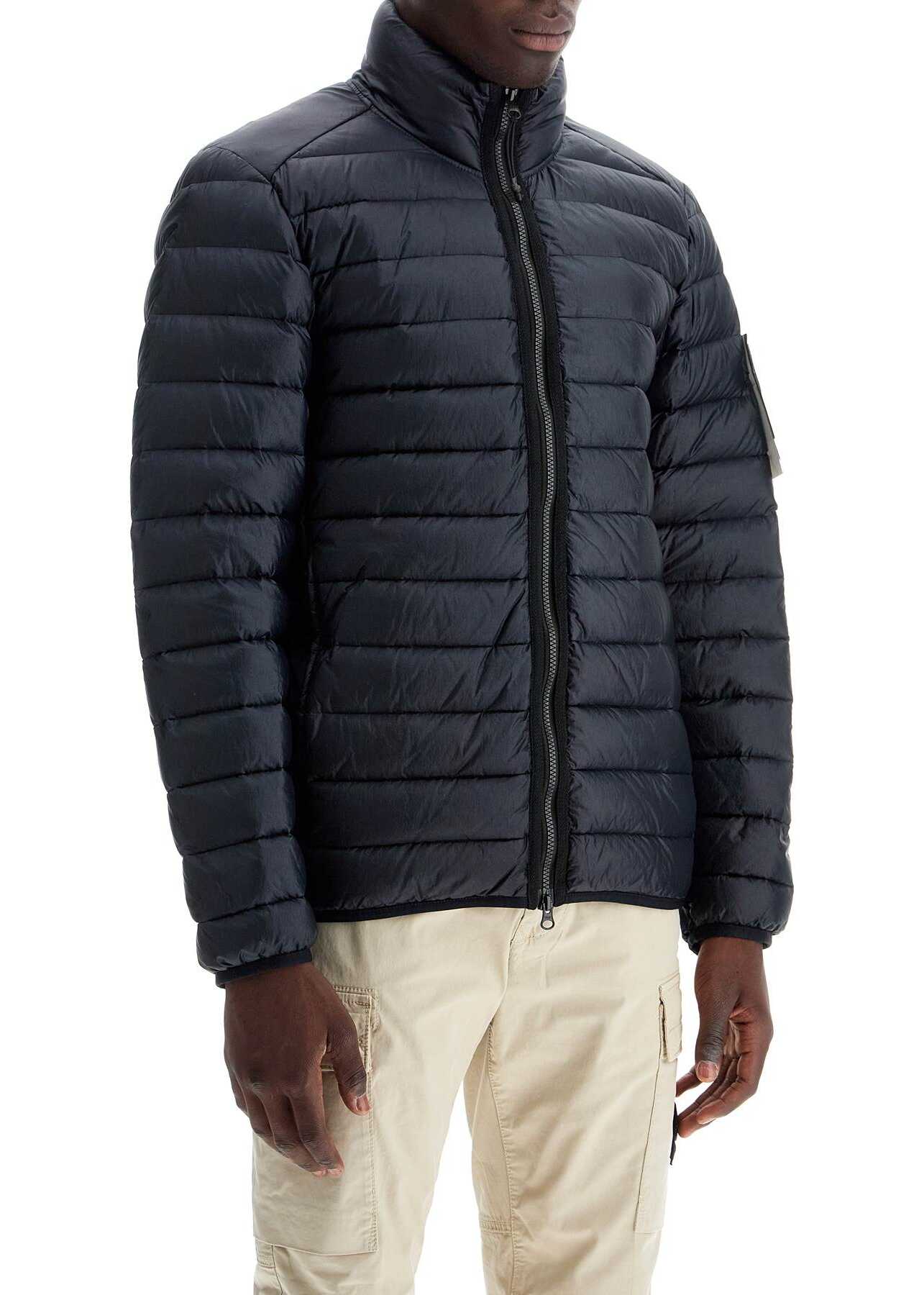 The Stone Island lightweight down jacket is made of recycled nylon, garment-dyed with an anti-drop finish and quilted without seams. Filled with 90/10 direct injection duck down and shaped with elastic tape on the cuffs and hem, it features a stand-up collar, two-way zip closure, and side pockets with zips. Regular fit. The model is 187 cm tall and wears size L.
