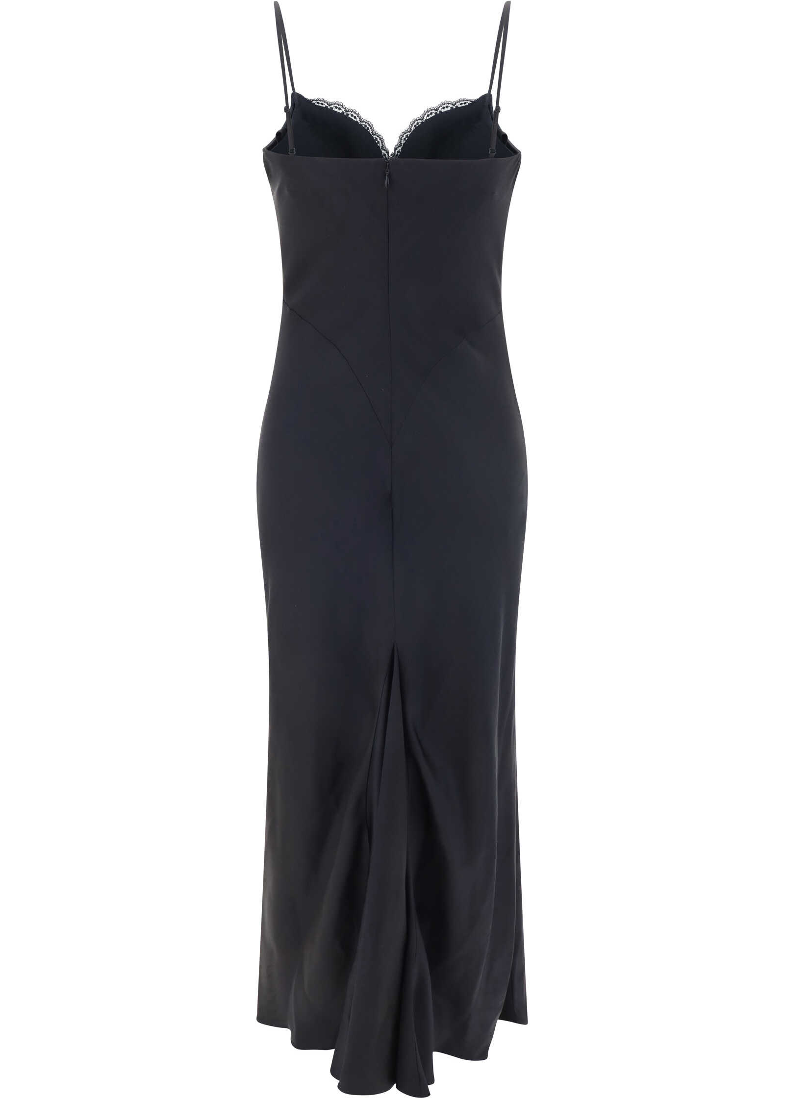 Silk Dress by Alexander McQueen, thin shoulder straps, soft sweetheart neckline on front with lace detail on neckline, concealed back zipper closure, back slit.