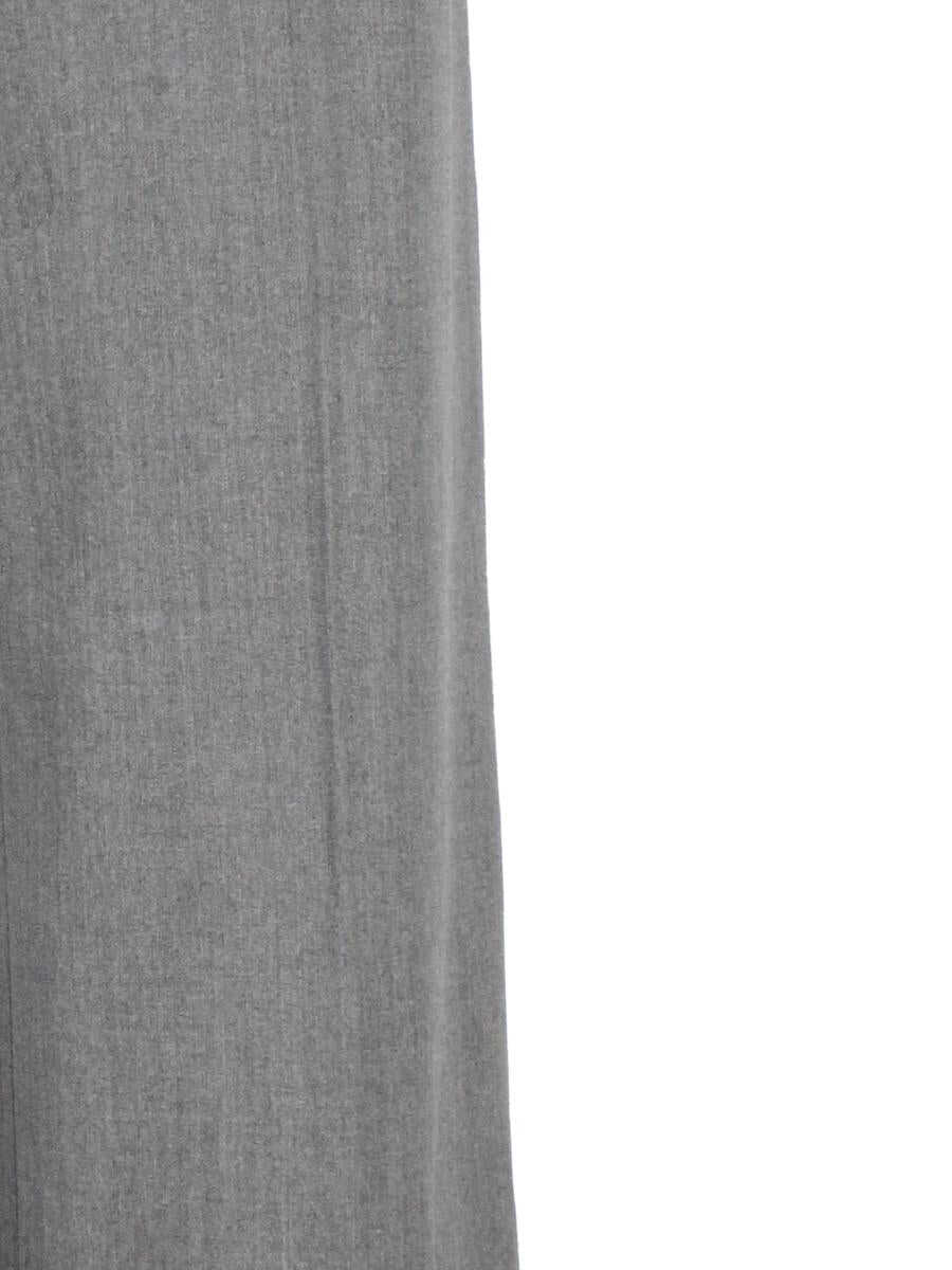 medium grey twill weave high-rise belt loops dart detailing pressed crease concealed front fastening straight leg slip pockets to the sides two rear jetted pockets
