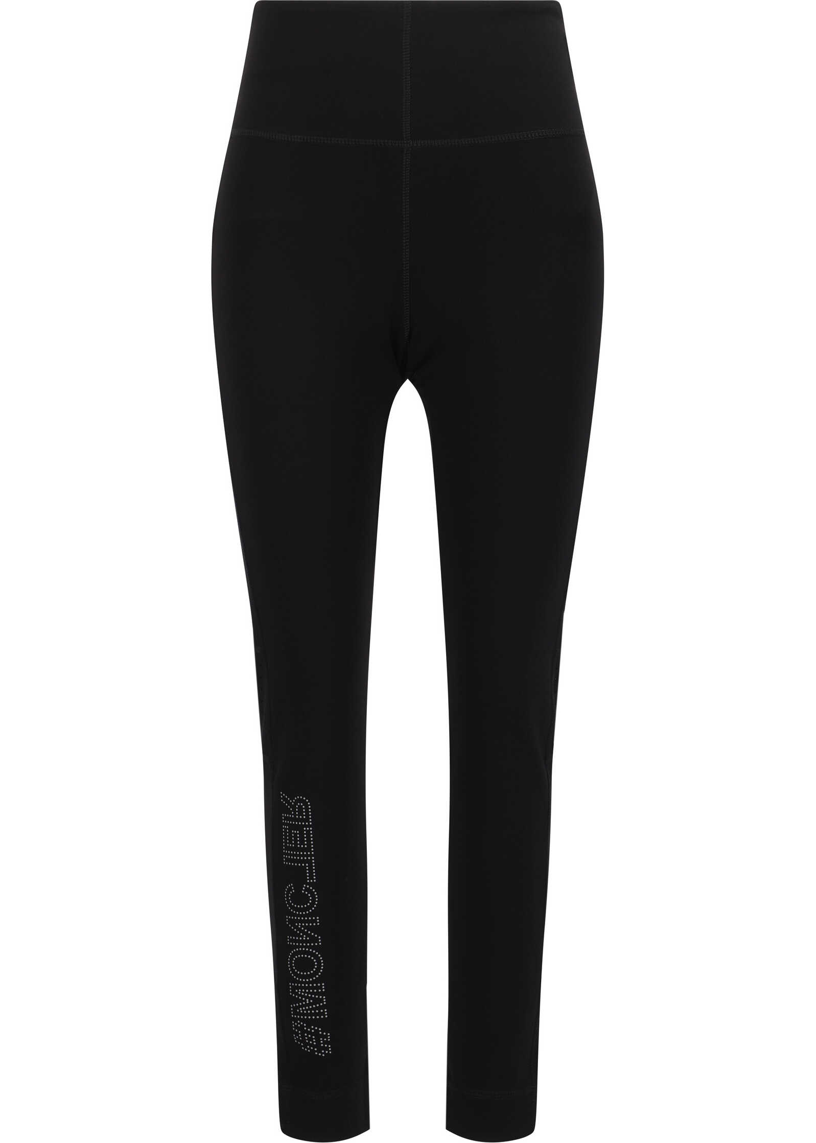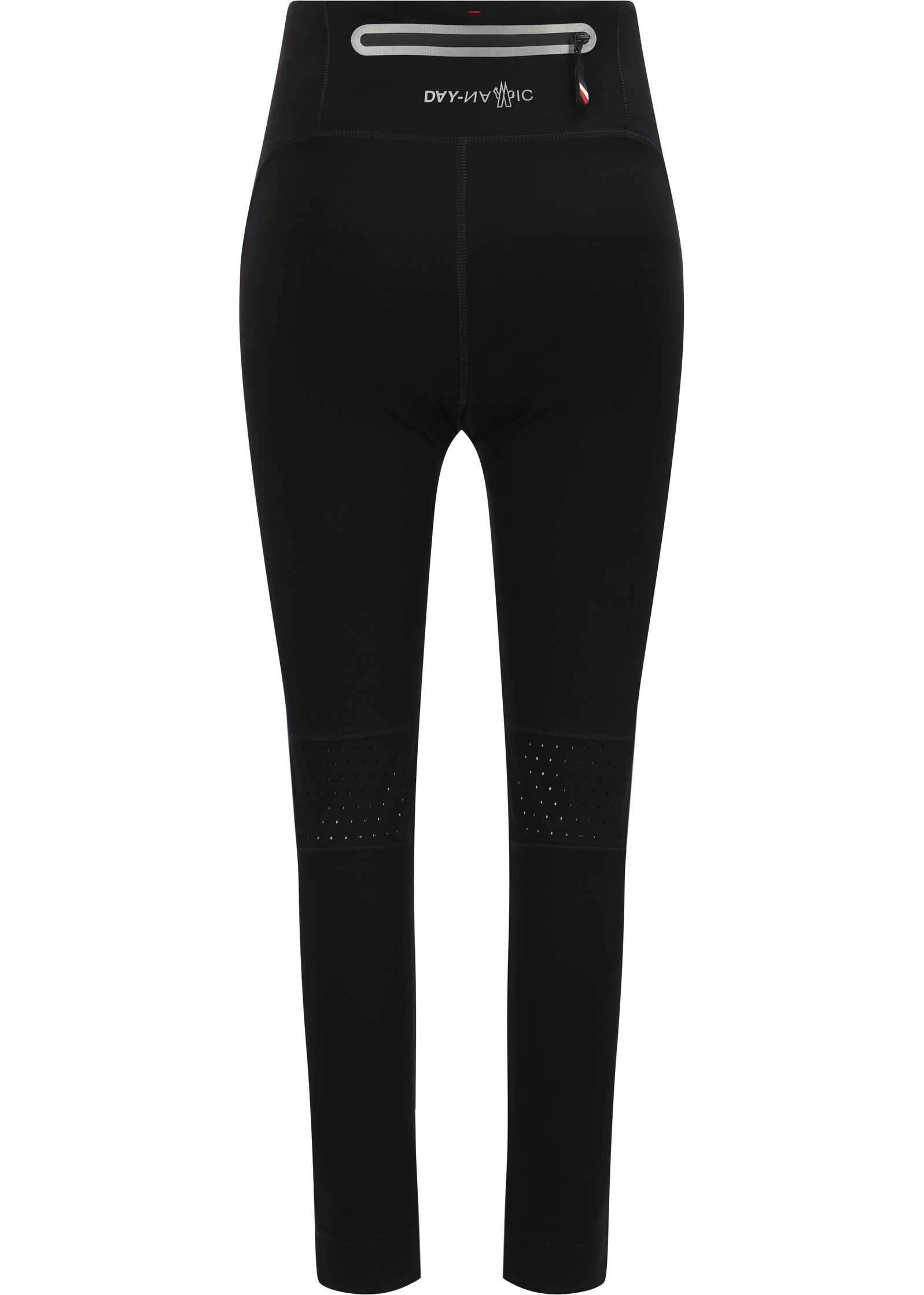 Leggings by Moncler Grenoble, large zippered welt pocket on back, iconic brand monogram embossed pressure print on front and back, slim fit.