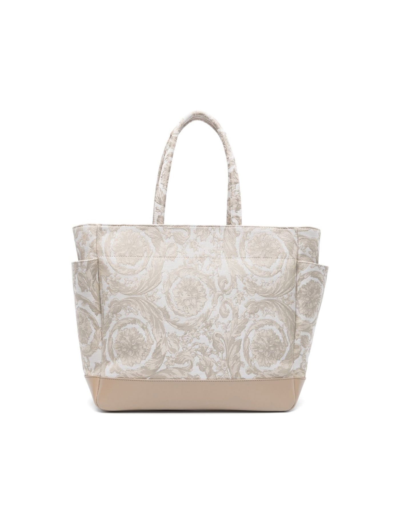 Mum tote bag Mum tote bag in cotton blend with all-over Versace print, contrasting logo sewn on the front, shoulder strap, handles. Equipped with changing cloth.