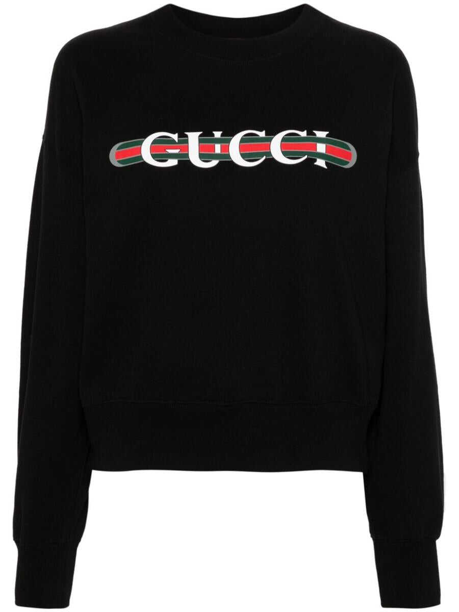 black cotton jersey texture Gucci Web print to the front ribbed trim crew neck long sleeves straight hem We've partnered with Good On You — an independent agency that rates how brands perform in relation to their impact on the planet, people and animals, with a multi-criteria rating simplified to a five points scale. In order to be awarded our conscious label, larger brands need to score a minimum of four out of five ('Good'), while smaller brands must score at least three out of five ('It's A Start'). This item comes from a brand rated three out of five ('It's A Start') by Good on You at the time it was added on FARFETCH. Please note, this is a brand-level rating and does not guarantee that this product is made with conscious materials. Learn more about what makes a product Conscious on our Conscious Criteria page