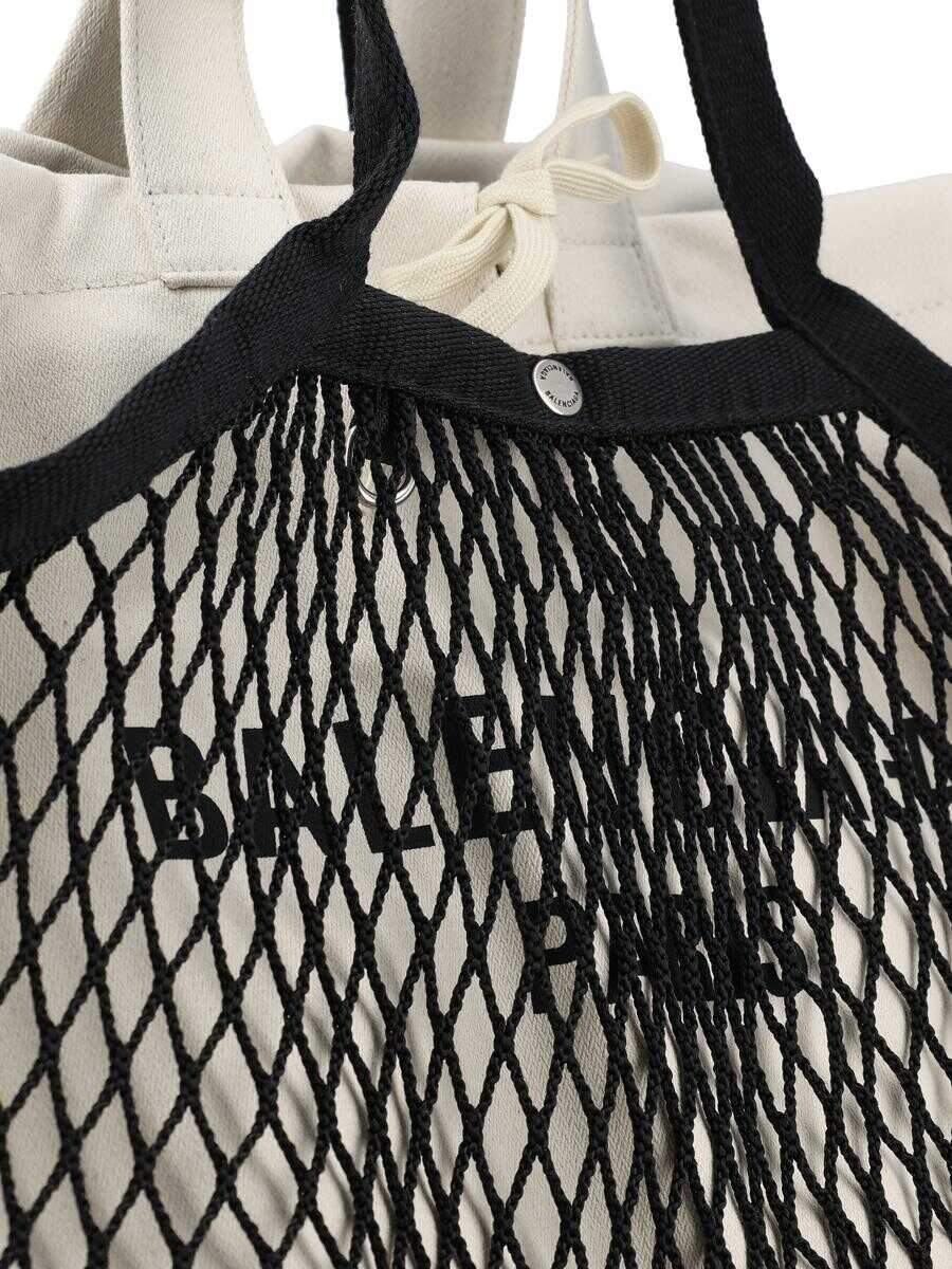 - Material: 70% polyamide, 15% cotton, 15% polyester - Color: White - Nylon-lined interior - Other details: Balenciaga lettering and detachable pouch - Drawstring closure - Made in Italy - Dust bag - Item number: 7918092AA479960