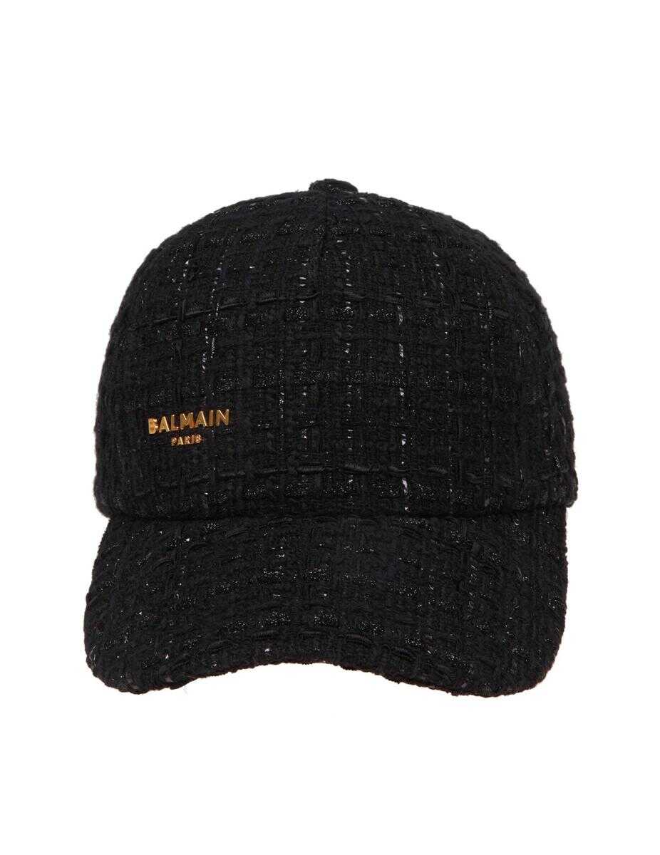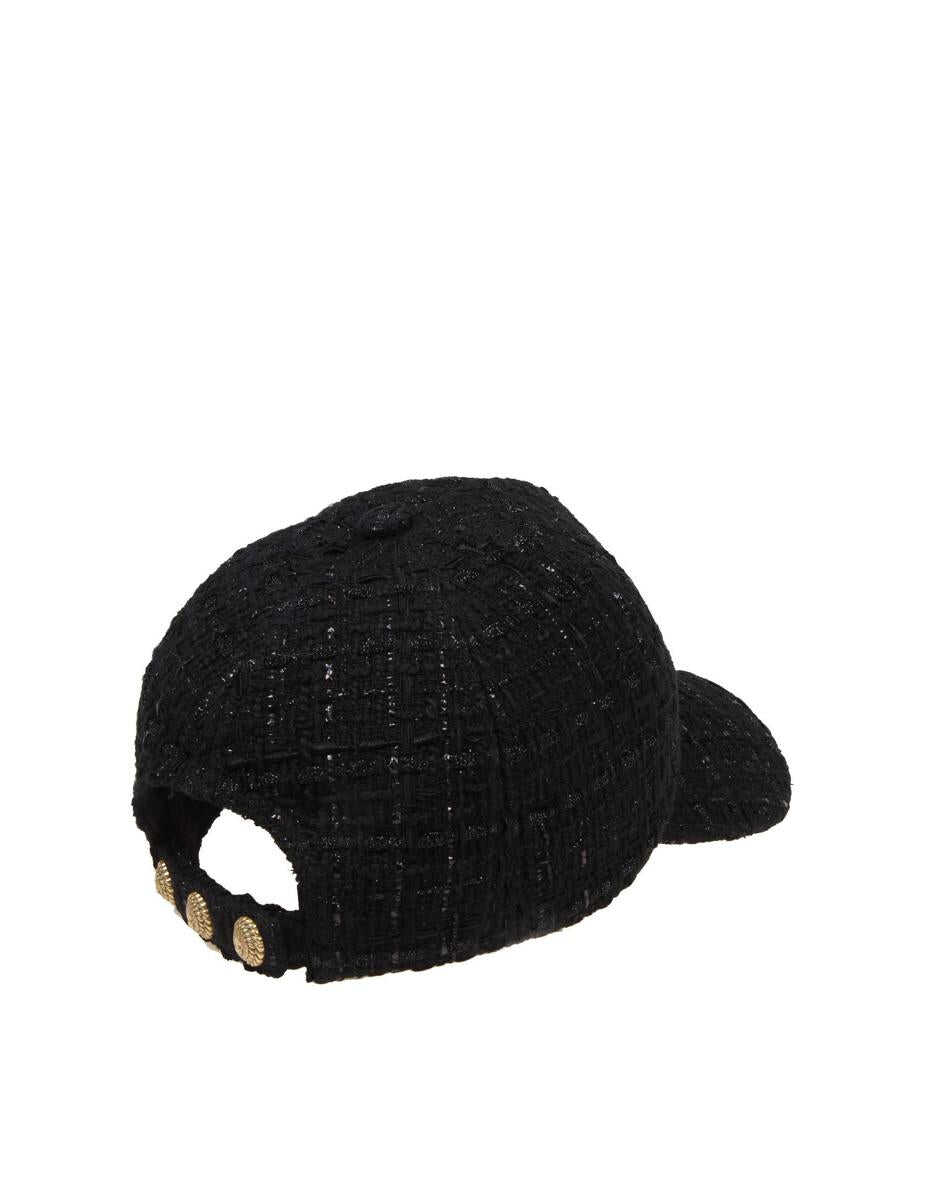 Hat with wool flap Black colour Gold colored metal logo Adjustable back closure
