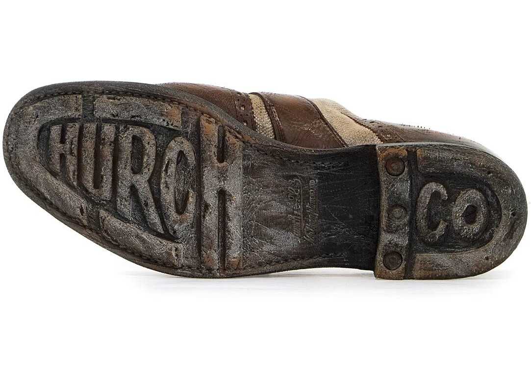 Church's vintage-look Shanghai loafers made of aged glacé treated-leather and linen. They feature details such as a raised toe, gathered fringes, silver finished-buckled strap and full brogue pattern. Leather lining and insole with vintage Church's label and embossed logo, rubber sole with embossed vintage logo.