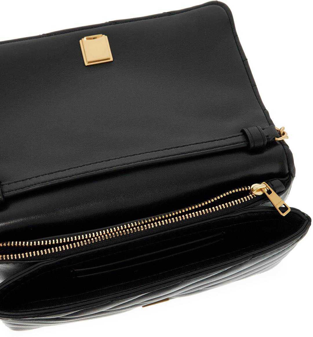 The Kira mini crossbody bag by Tory Burch is made of leather with a chevron quilted pattern and features the iconic Double T in gold metal on the flap. It has a magnetic closure, an interior pocket with a zip and an open compartment complete with two credit card slots. Equipped with a chain strap with adjustable and removable leather insert.