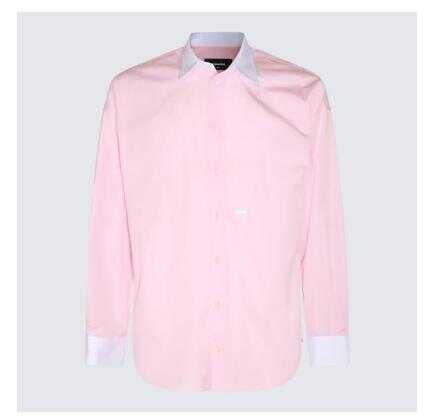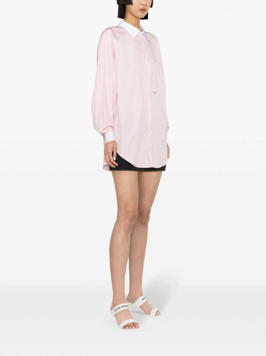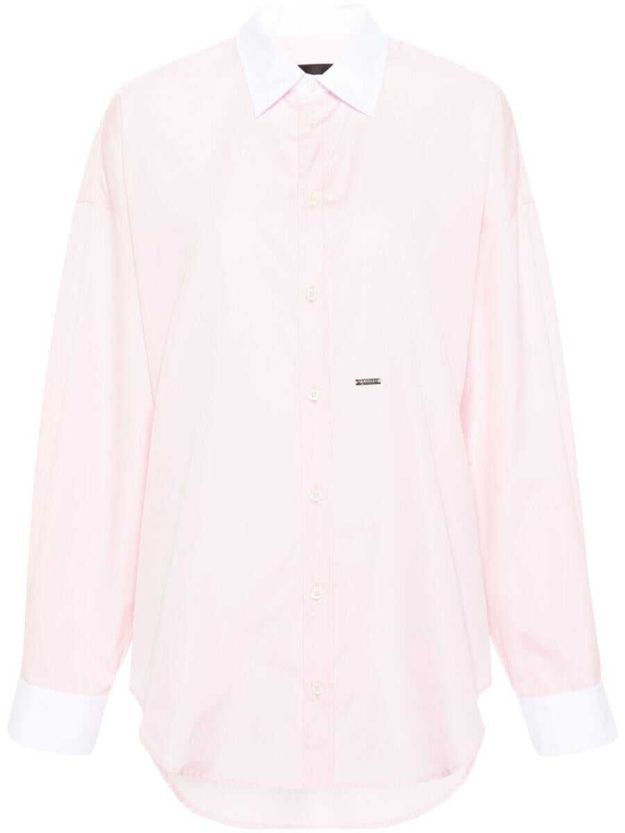 pink/white cotton box-pleat detail silver-tone logo plaque contrasting pointed flat collar front button fastening drop shoulder long sleeves with buttoned cuffs curved hem