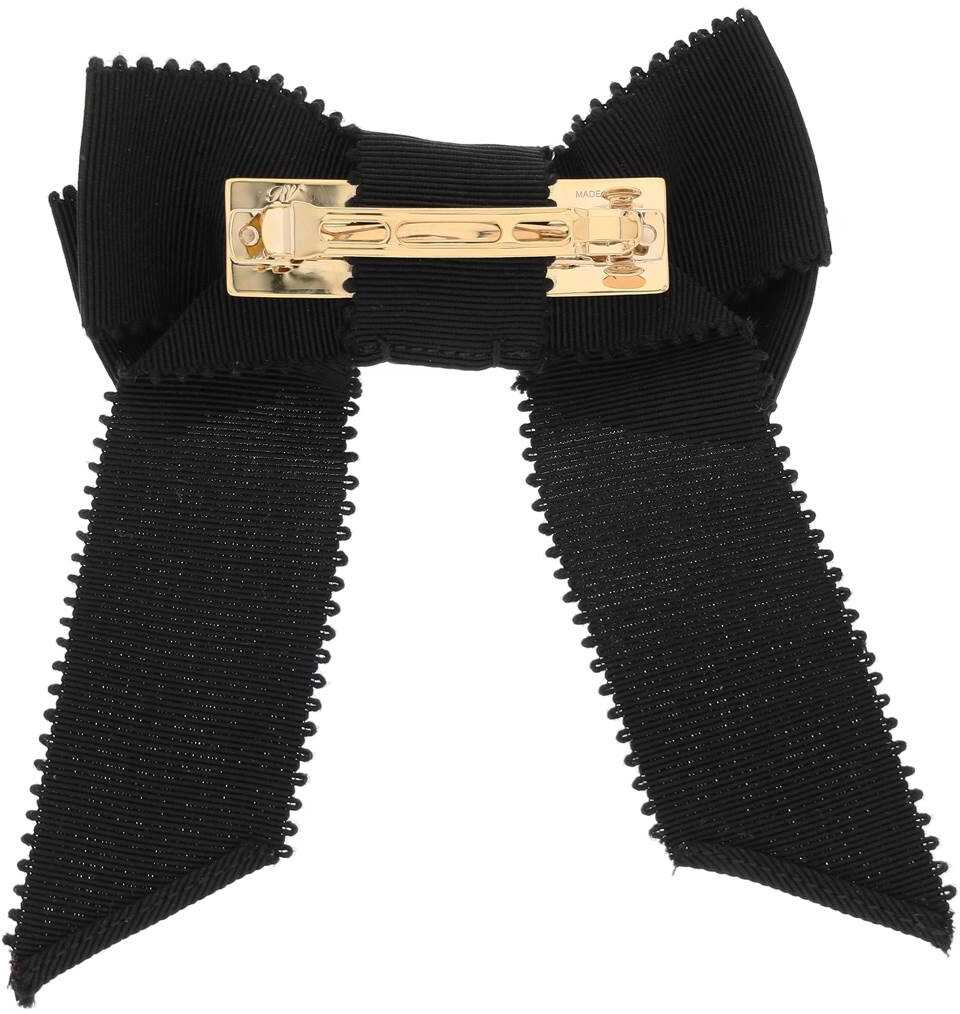 Hair-clip by Roger Viver made of grosgrain, with an elegant bow and embellished with iconic Broche Vivier crystal buckle. Platinum-finished metal clip closure.