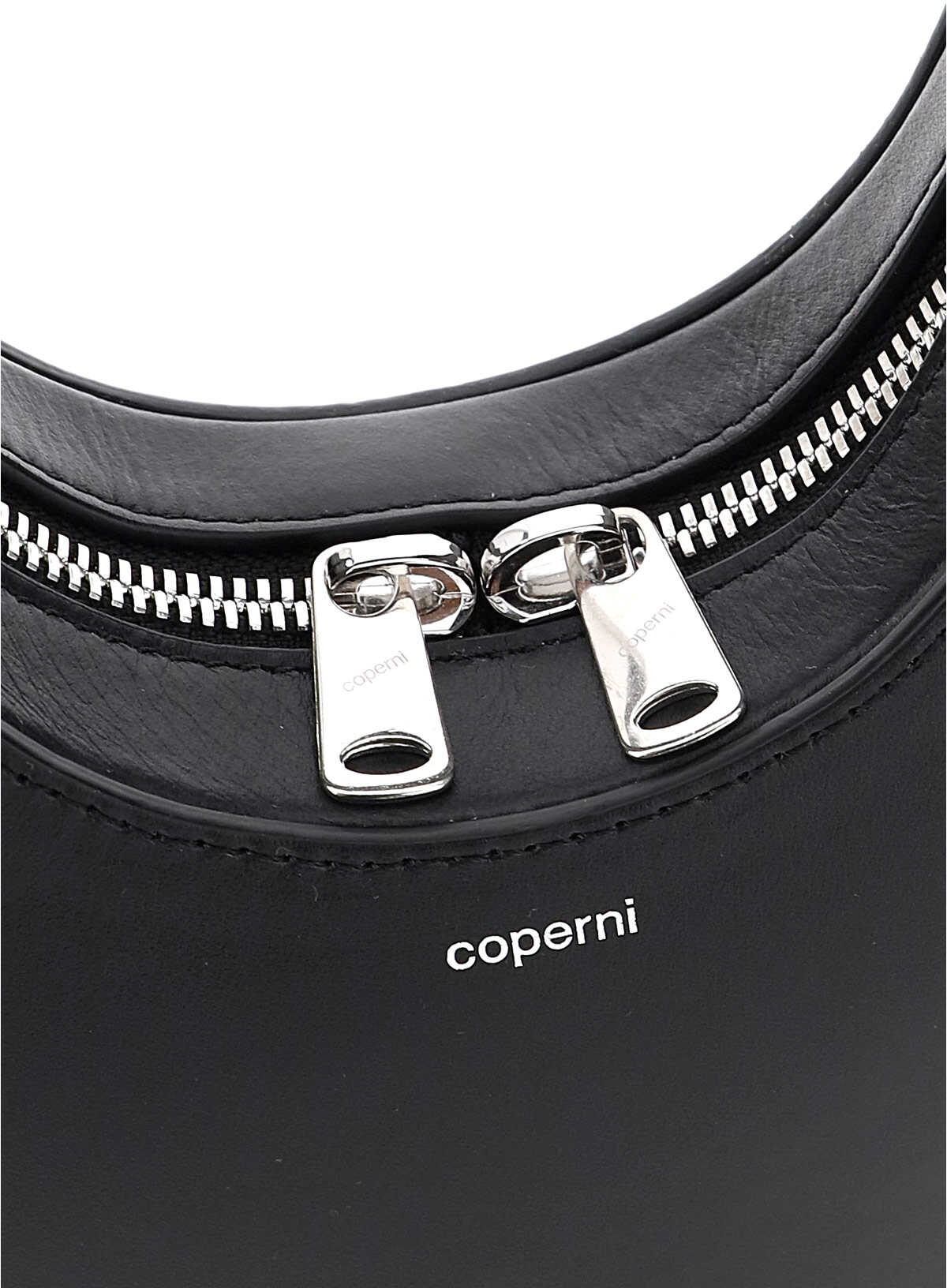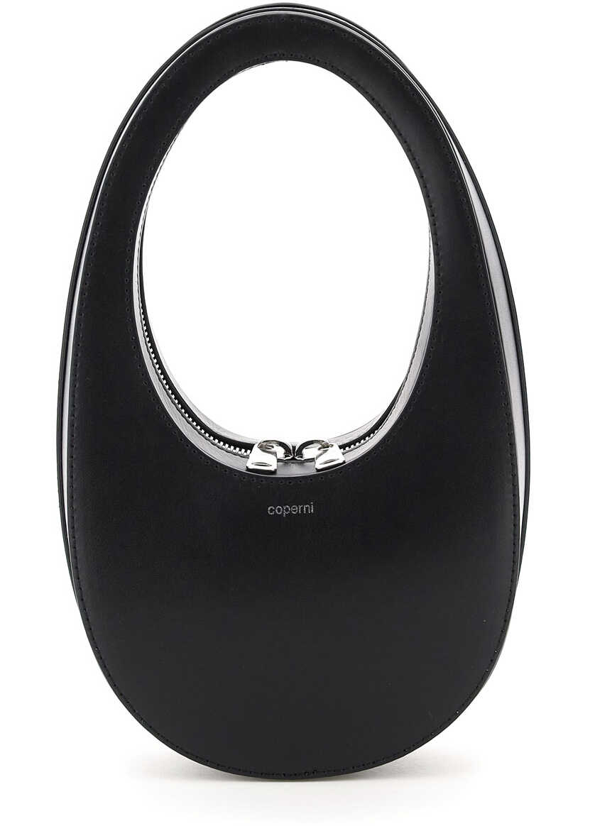Coperni Mini Swipe leather hobo bag with rigid structure and zip around closure. Silver printed logo on the front, side logo label, leather lining. Steel-tone hardware.