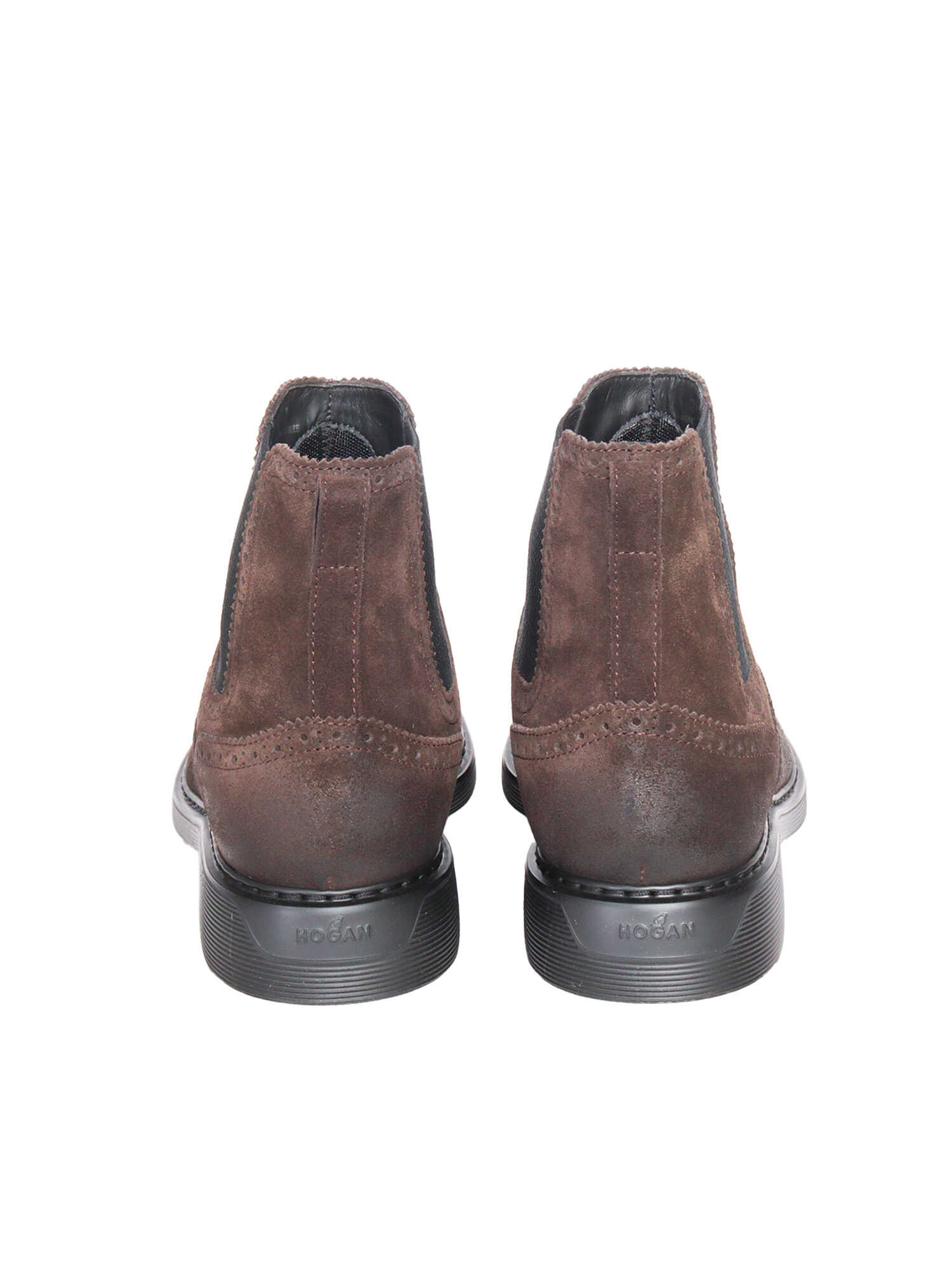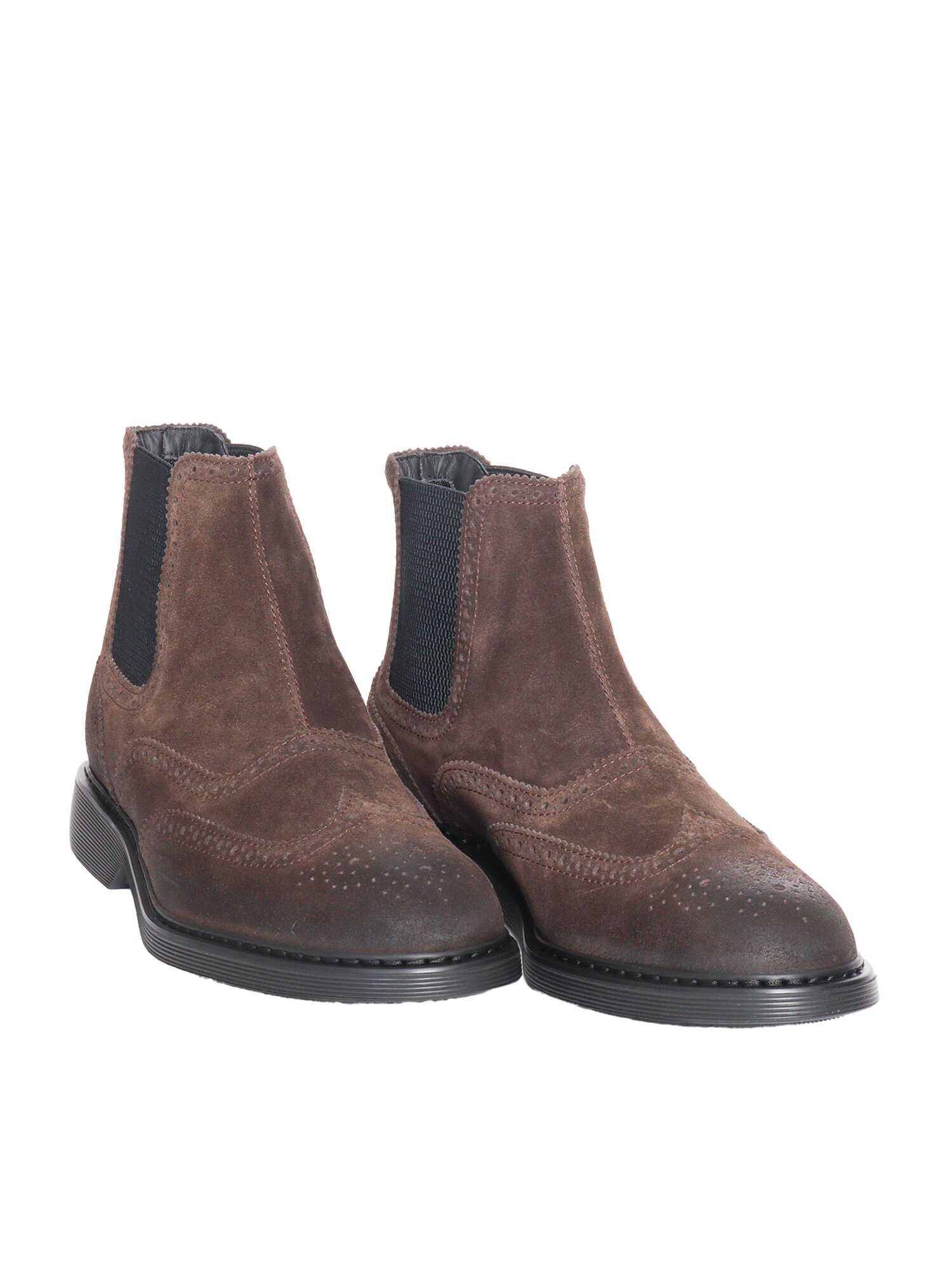 Split leather ankle boots, wingtip brogue motif, elasticated side inserts, welt with stitching, memory foam insole, rubber sole