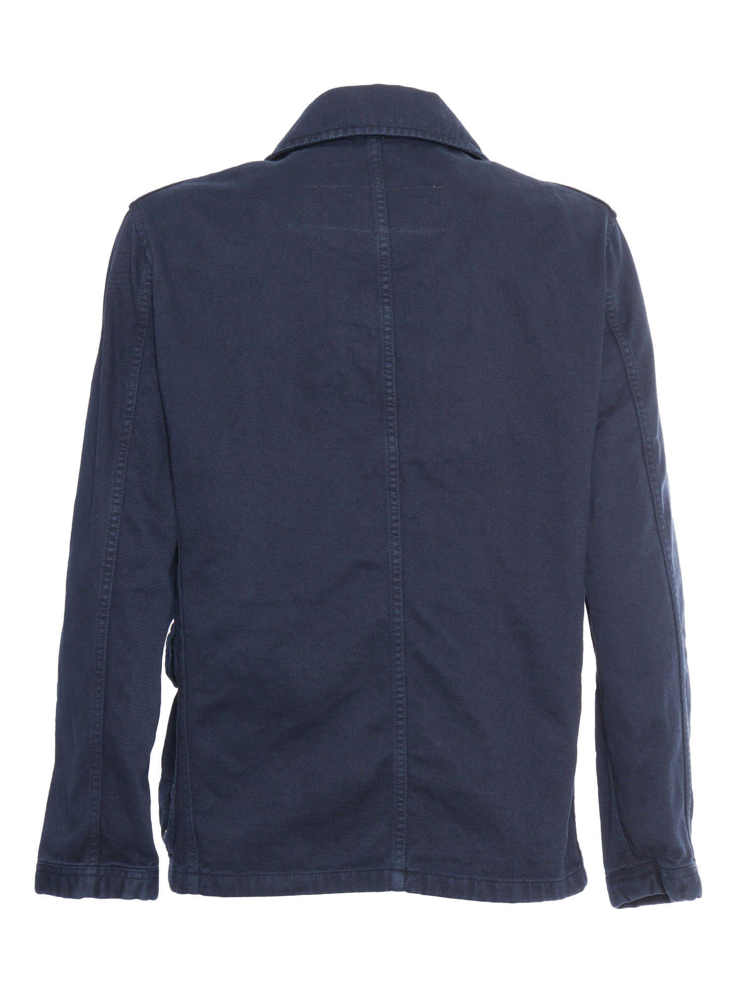 Archive Fay men's blue CCaban 4 hooks in cotton with bevelled collar, 2 large patch pockets on the front, vertical front welt pocket, tone-on-tone visible stitching.
