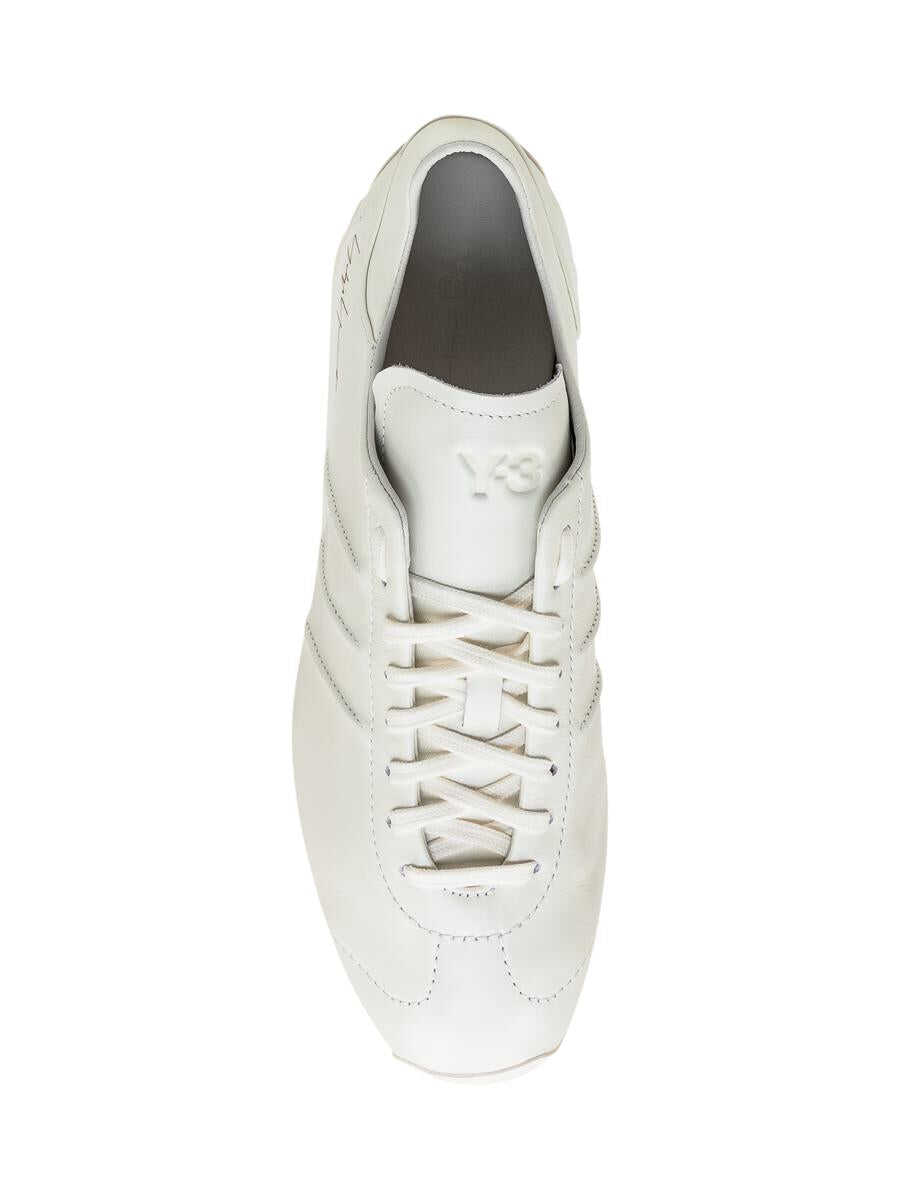 Low white leather sneaker. Lace-up closure. Y-3 logo on tongue. Signature detail on back. Reference size: UK