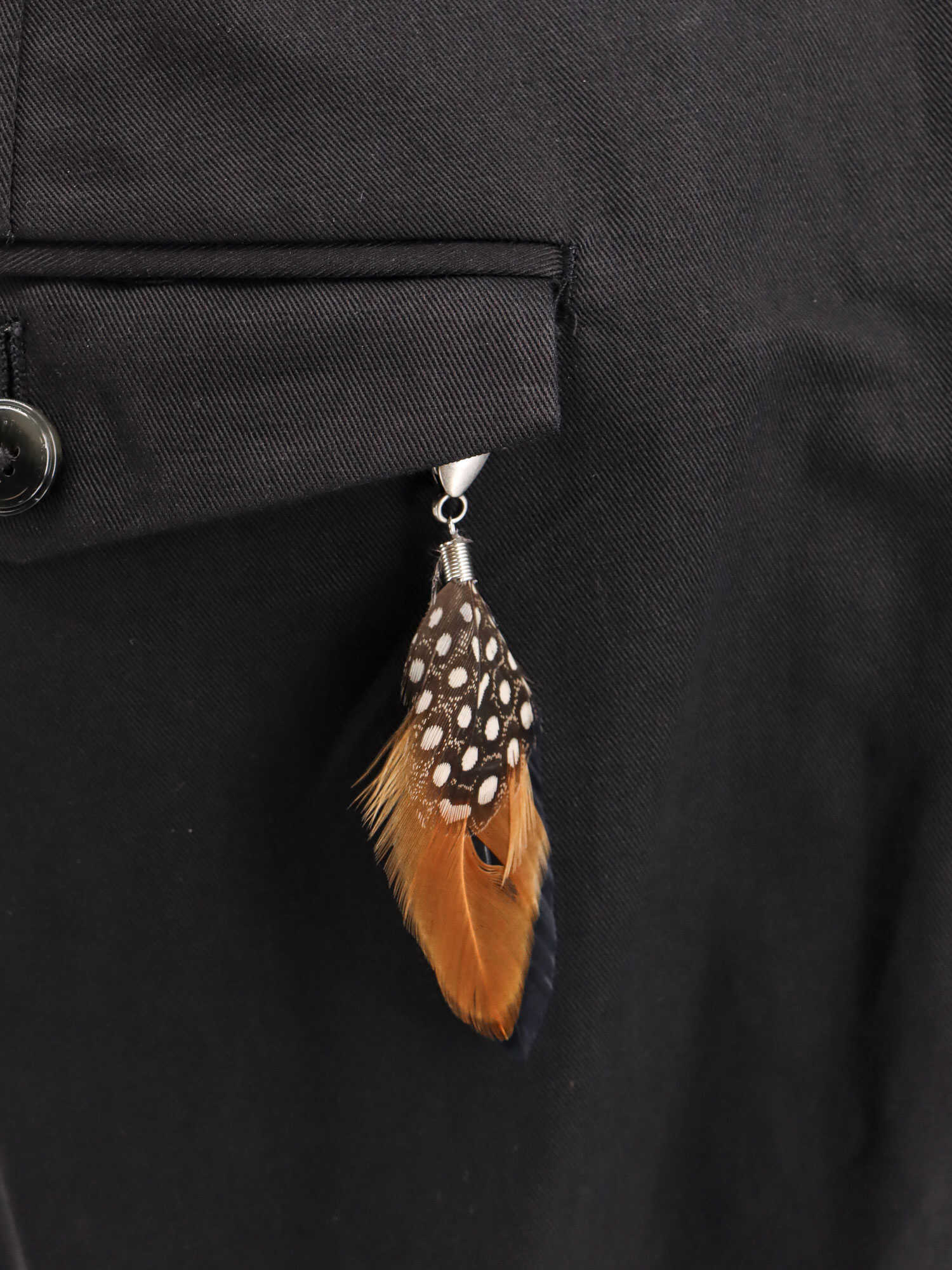 Closure with buttons and zip, Lateral slant pockets, Back pockets with flap and button, Fold at the bottom, 60% cotton 40% linen