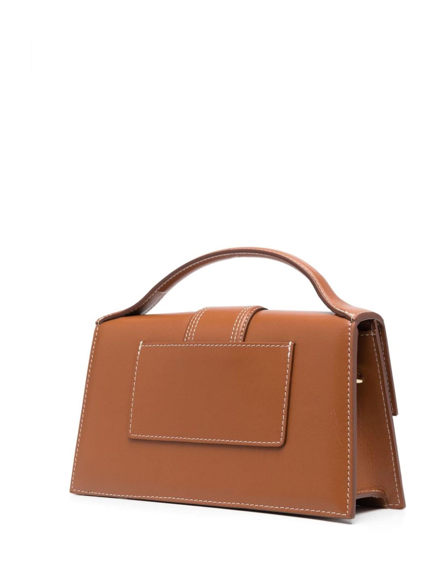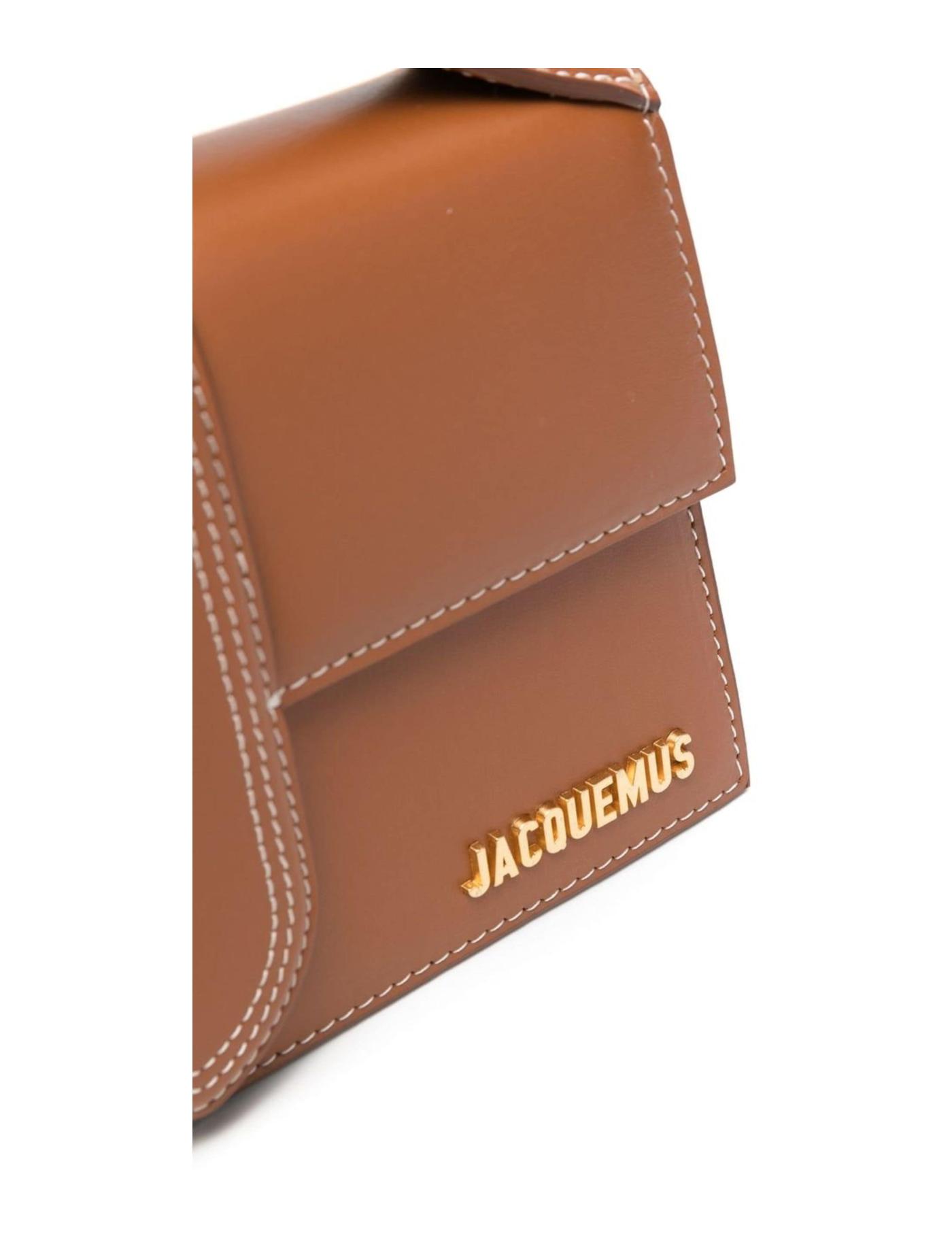 A larger iteration of one of their signature styles, Jacquemus' Le Bambinou amplifies the brand's penchant for minimal, structured silhouettes. Crafted from smooth leather with a flat top handle, the bag features a removable shoulder strap so it can be worn across the body. The instantly recognisable gold logo plaque adorns the front.