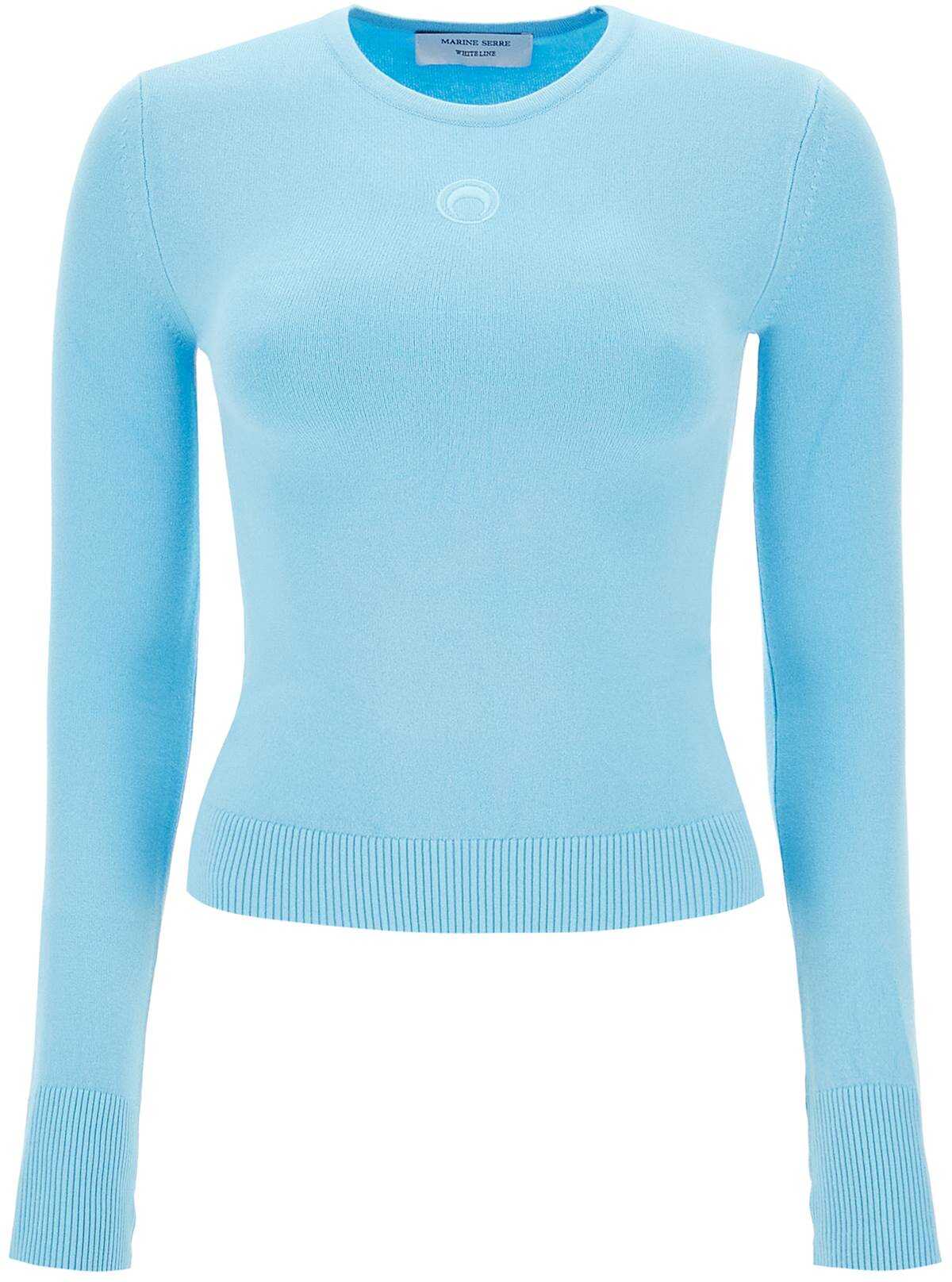 This Marine Serre pullover is made of a thin stretch viscose yarn and features the characteristic Moon embroidery in tone on the chest. It has a crew neck, ribbed cuffs and hem. The slim fit is completed by thumbholes at the wrists. The model is 177 cm tall and wears a size S.