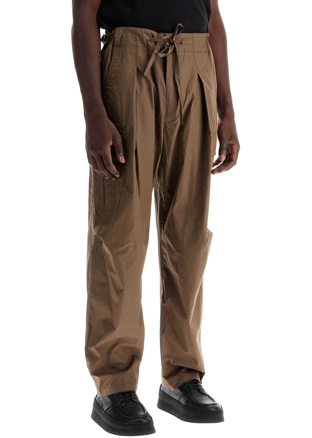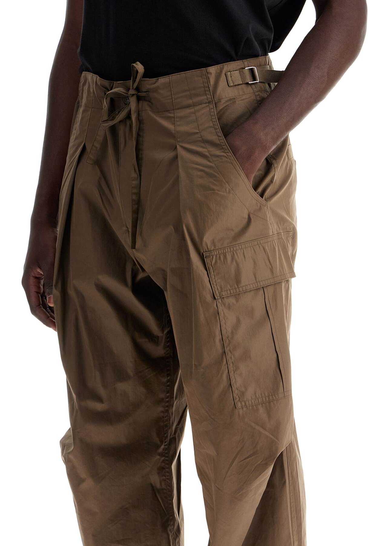 Marant cargo pants made of lightweight cotton blend fabric with a fluid construction and loose fit. They feature integrated drawstrings at the waist to tie, button and invisible zip closure, French front pockets, utility side pockets and welt pockets on the back. Finished with pleats on the knees. The model is 187 cm tall and wears size FR 40.
