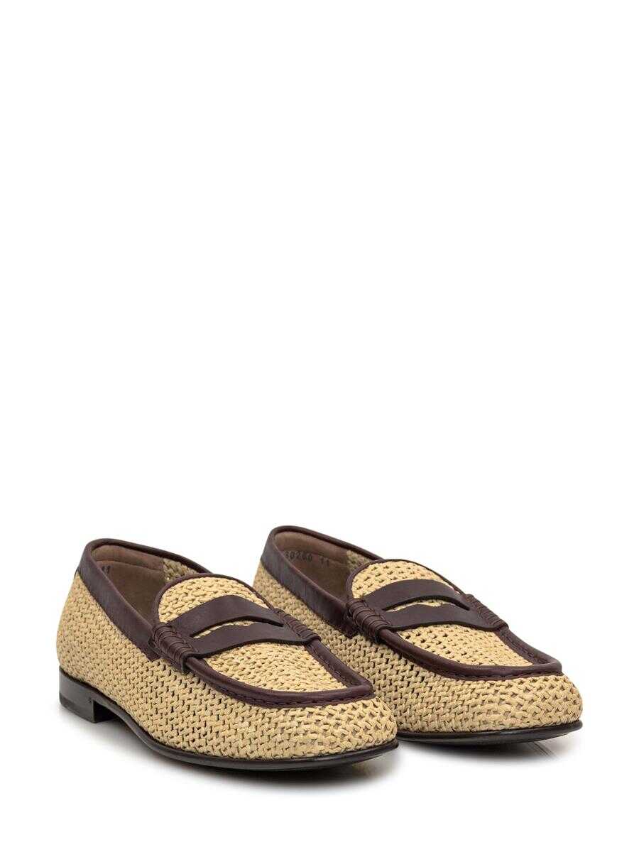 Macramé raffia slipper. Leather details. Metal logo on the heel. Heel height:2