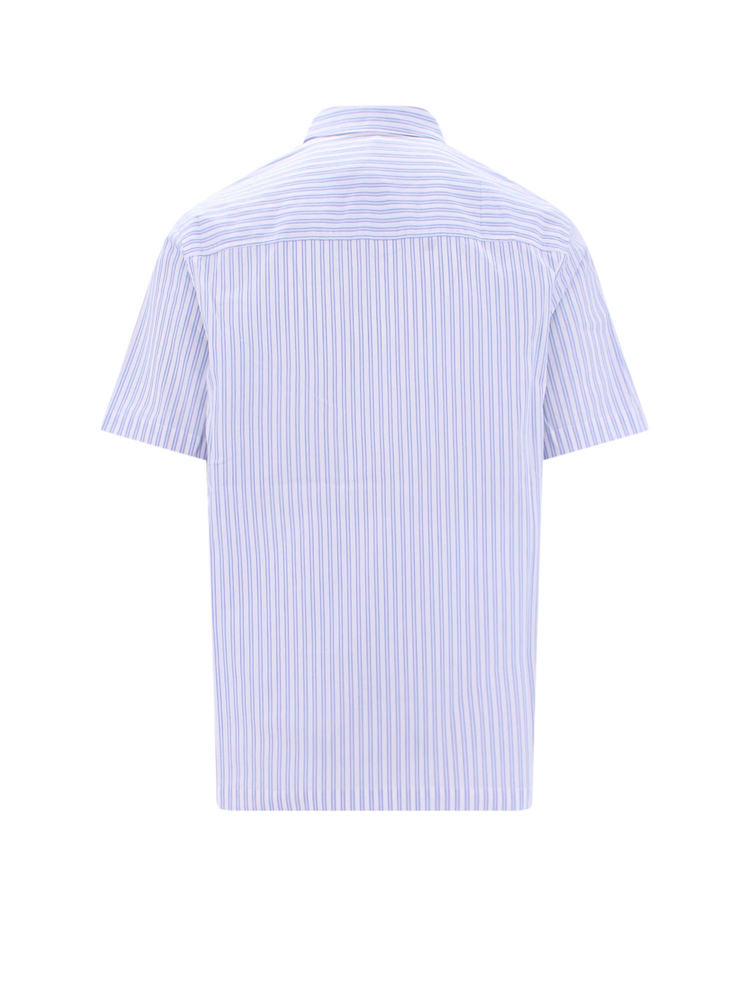 Upgrade your wardrobe with our Striped Recycled Cotton Shirt by Nanushka. Made with 100% cotton, this conscious shirt features a regular fit with short sleeves and a stylish applied pocket on the front. The white and striped pattern adds a touch of sophistication to your look. Available in LETTERS size range, this shirt is perfect for any occasion.