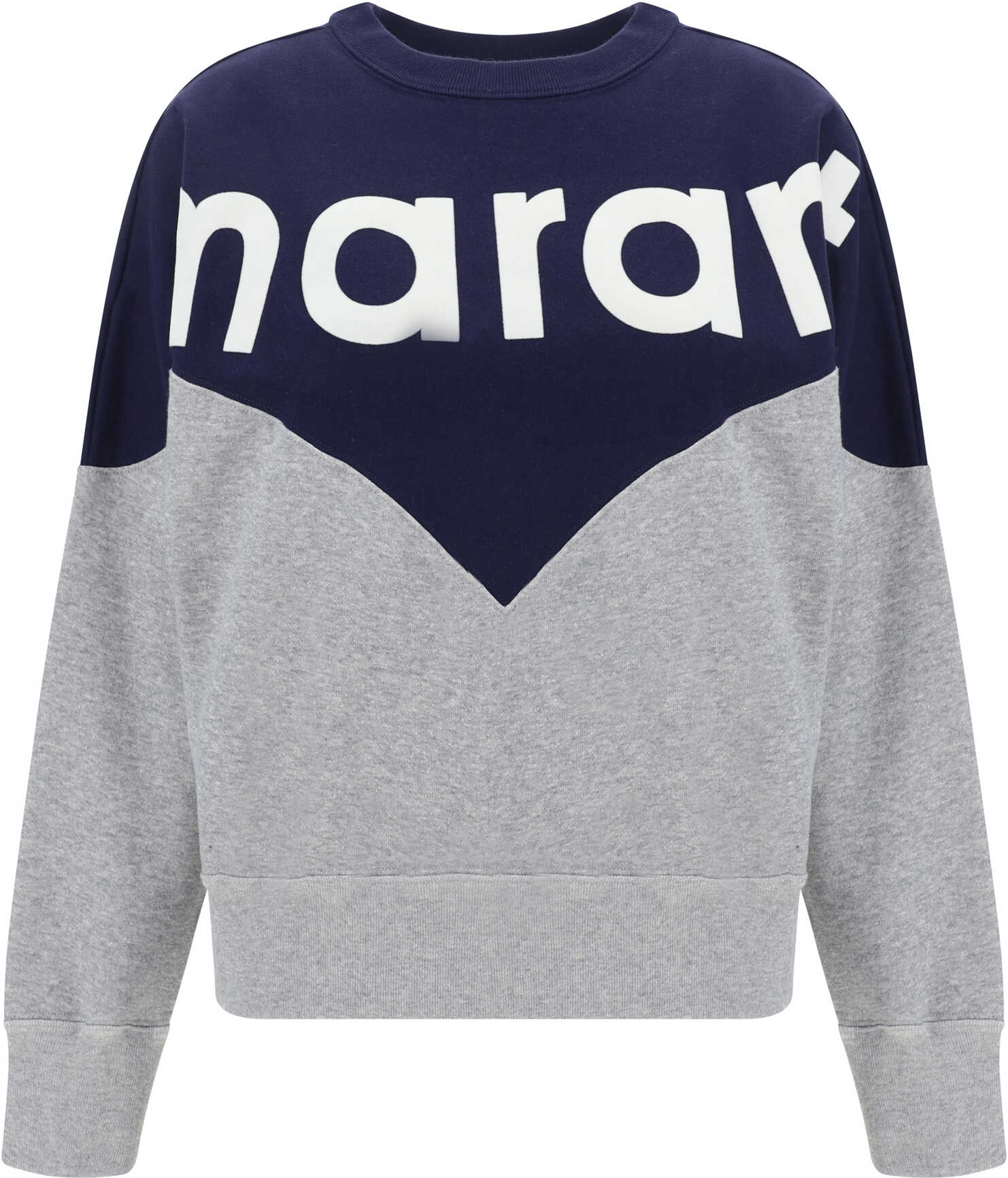 Cotton sweatshirt by Marant Etoile, ribbed crew neck, ribbed cuffs, ribbed hem, iconic velvet-effect brand monogram applied to front, regular fit.