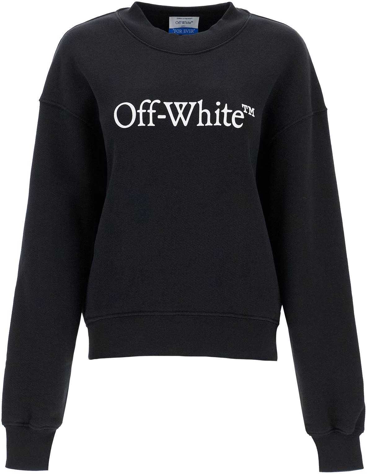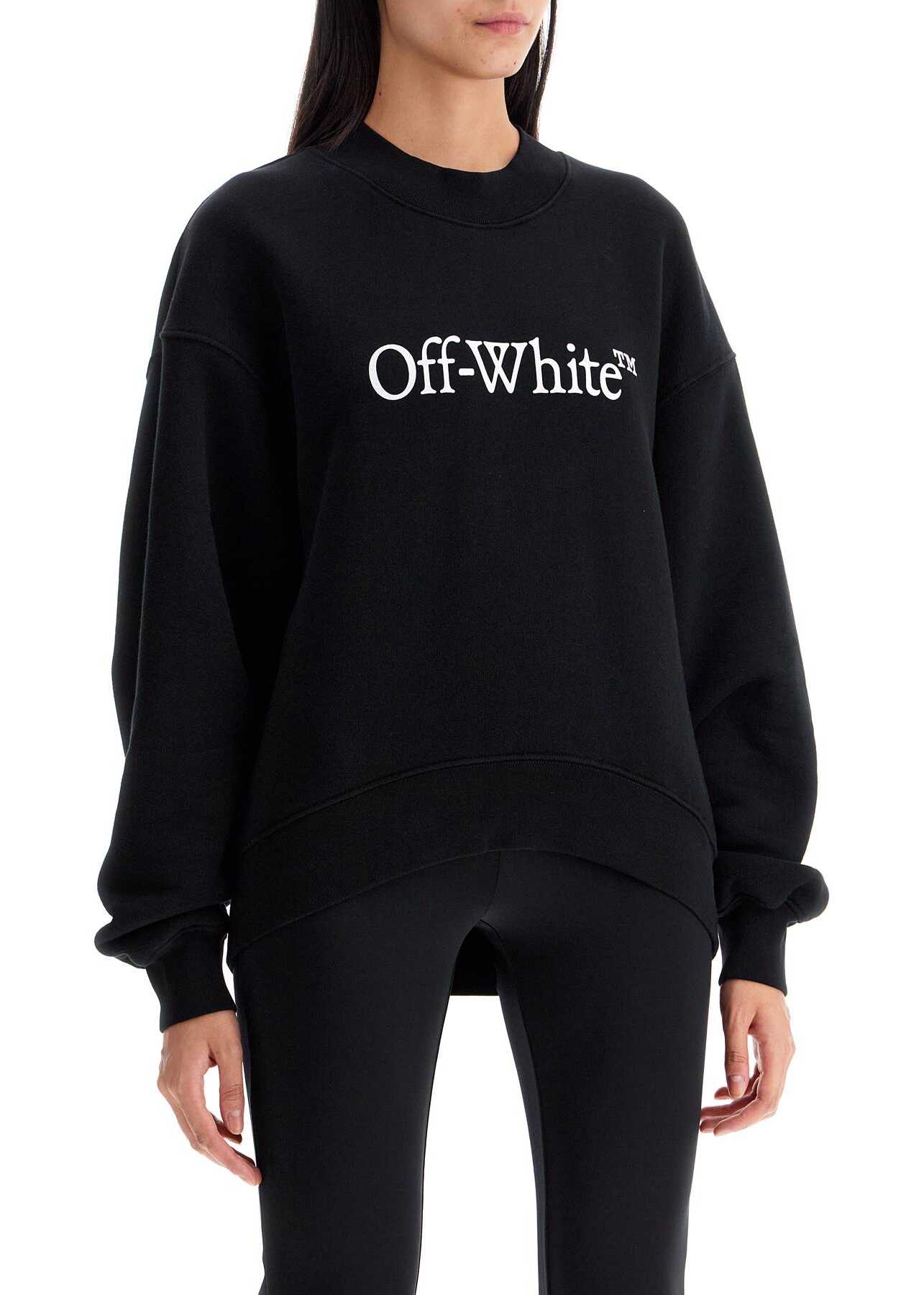 This Off-White crewneck sweatshirt is made of heavy brushed cotton jersey with a contrasting logo lettering print on the front. The design features an oversized fit and an asymmetrical hem, finished with ribbed edges. The model is 177 cm tall and wears size XS.