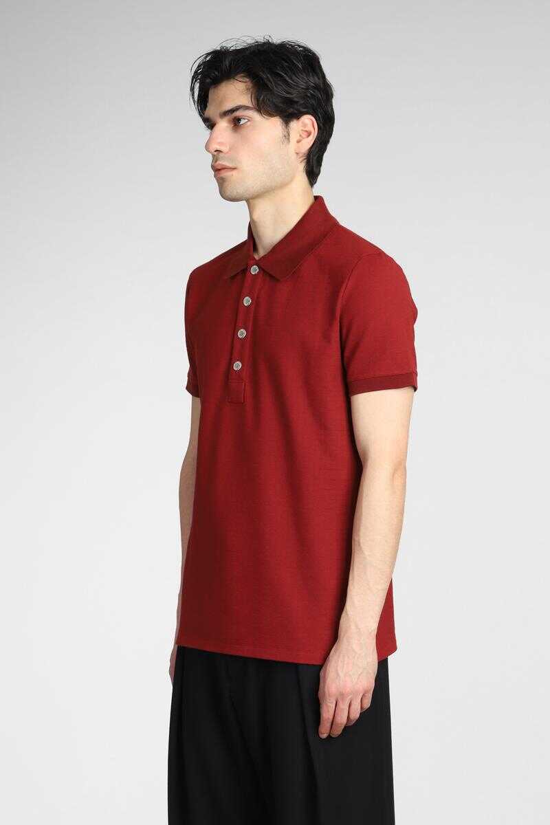 Polo in bordeaux cotton, collar, short sleeves, straight hem, 97% Cottone 3% Spandex, Made in Italy