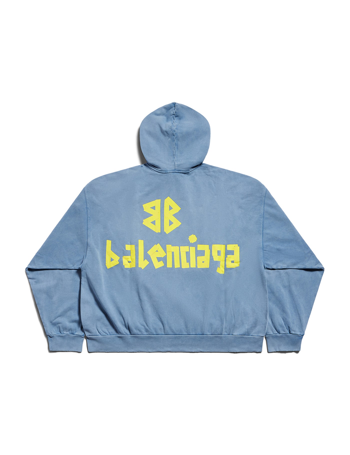 Sweatshirt in cyan cotton, hood, long sleeves, ribbed cuffs and bottom, logo print on front, destroyed detail, logo print back, 100% cotton, Made in Portugal