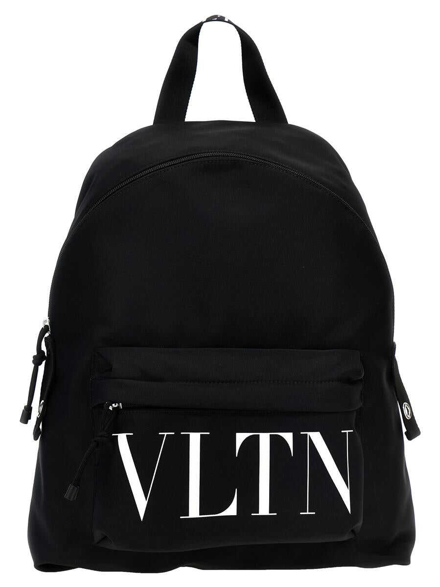 Nylon backpack with 'VLTN' logo print, zip closure, outer zip pocket, adjustable jacquard tape shoulder straps