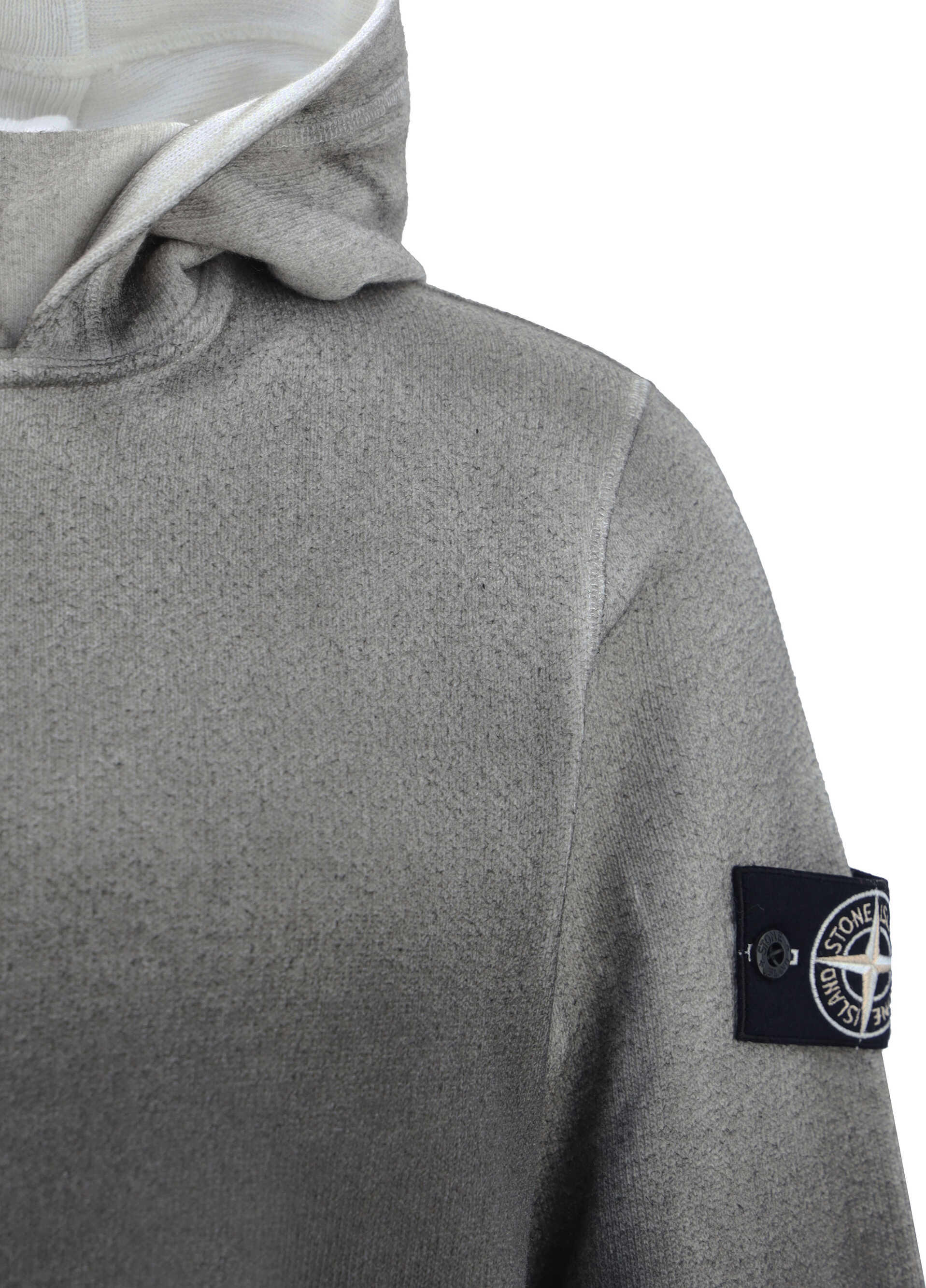 Cotton Sweatshirt by Stone Island, hooded design, front neckline design, ribbed cuffs, front kangaroo pocket, Windrose badge logo on sleeve, all-over gradient pattern, regular fit.