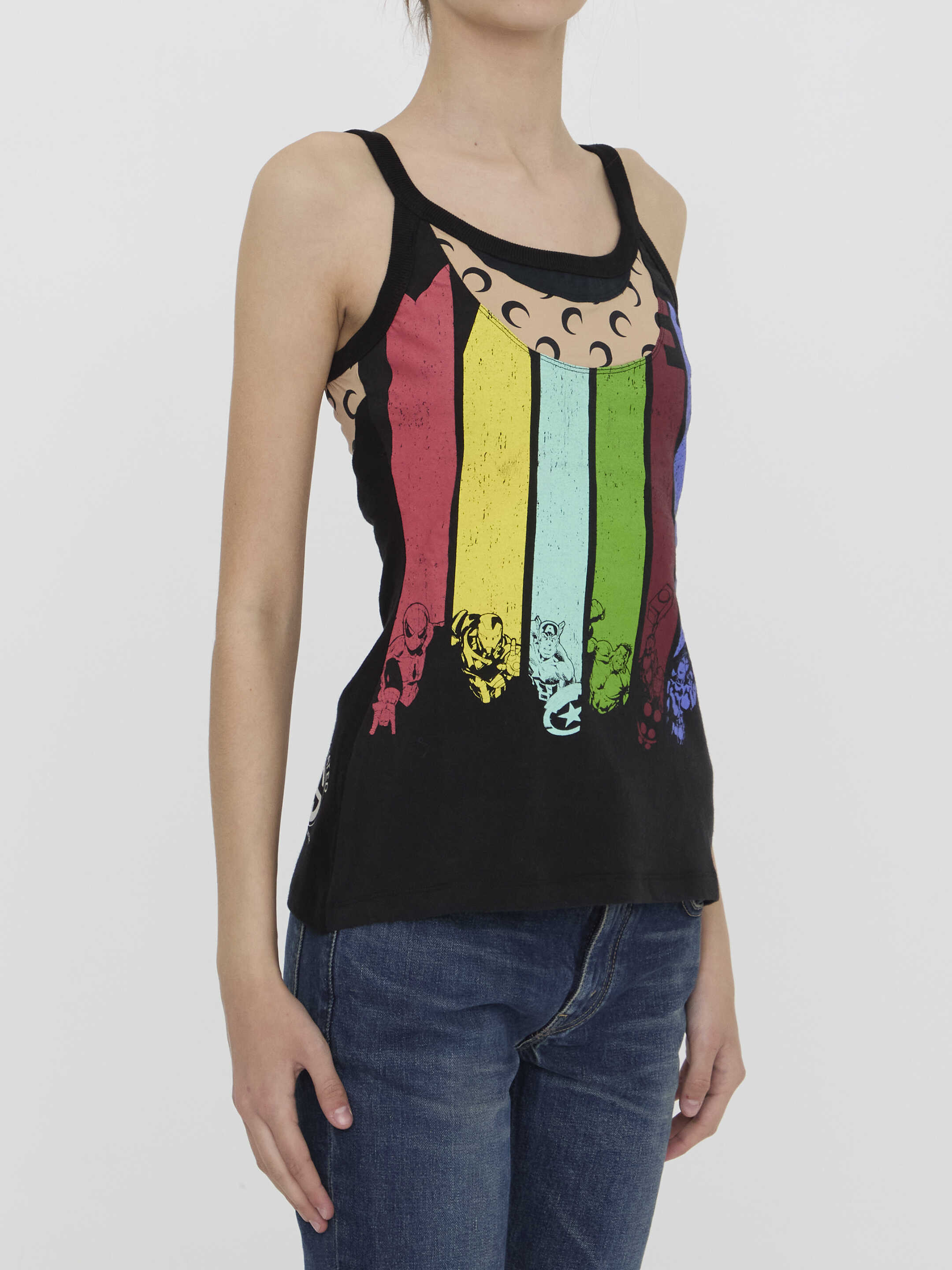 Tank top in regenerated cotton jersey with panelled design and All Over Moon inserts. It features ribbed trims and Marine Serre Regenerated logo at the back. Regular fit.