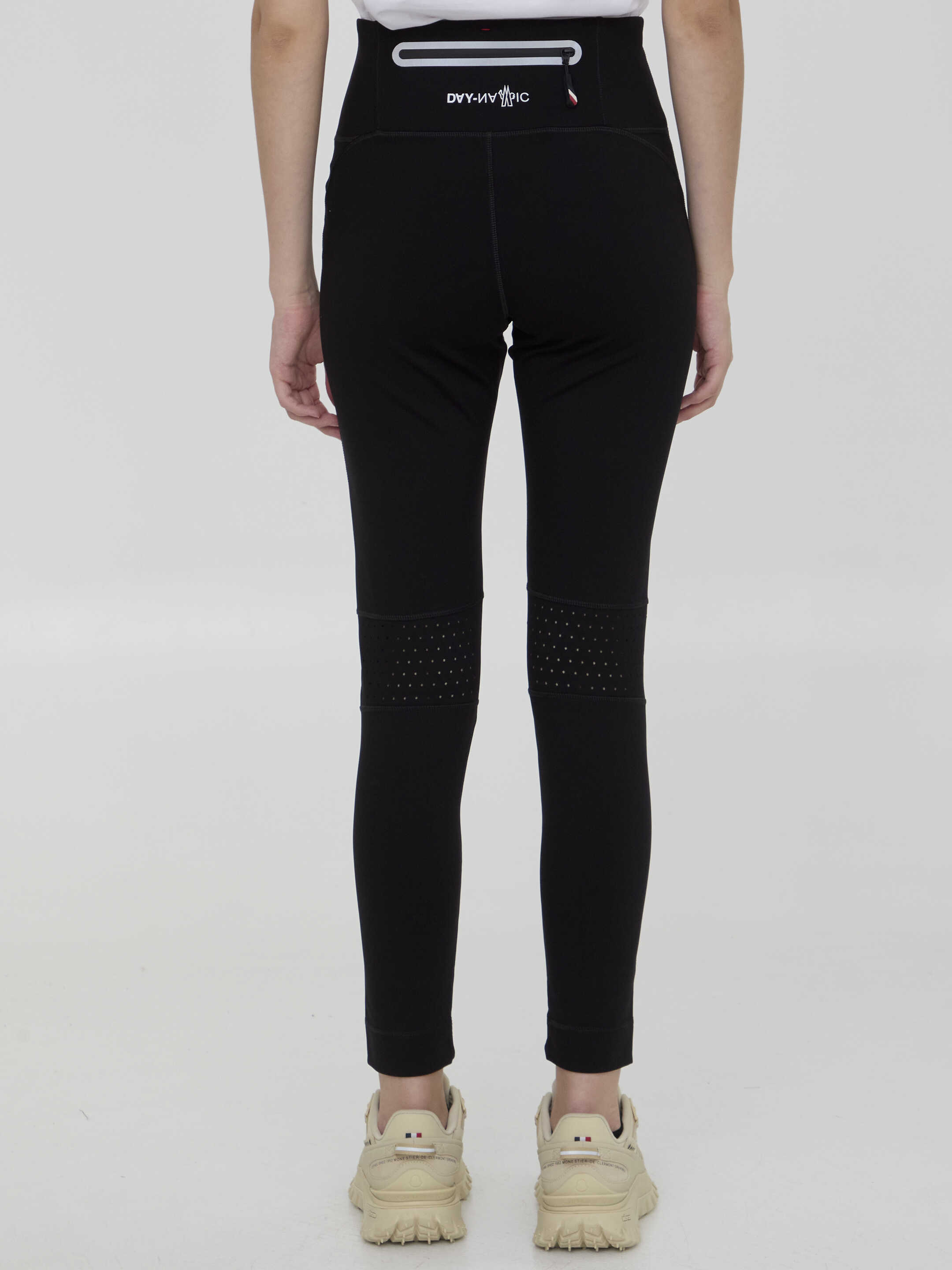 Leggings in black technical nylon jersey. It features one rear zip pocket, perforated inserts on the knees and branded reflective details. Tight fit.