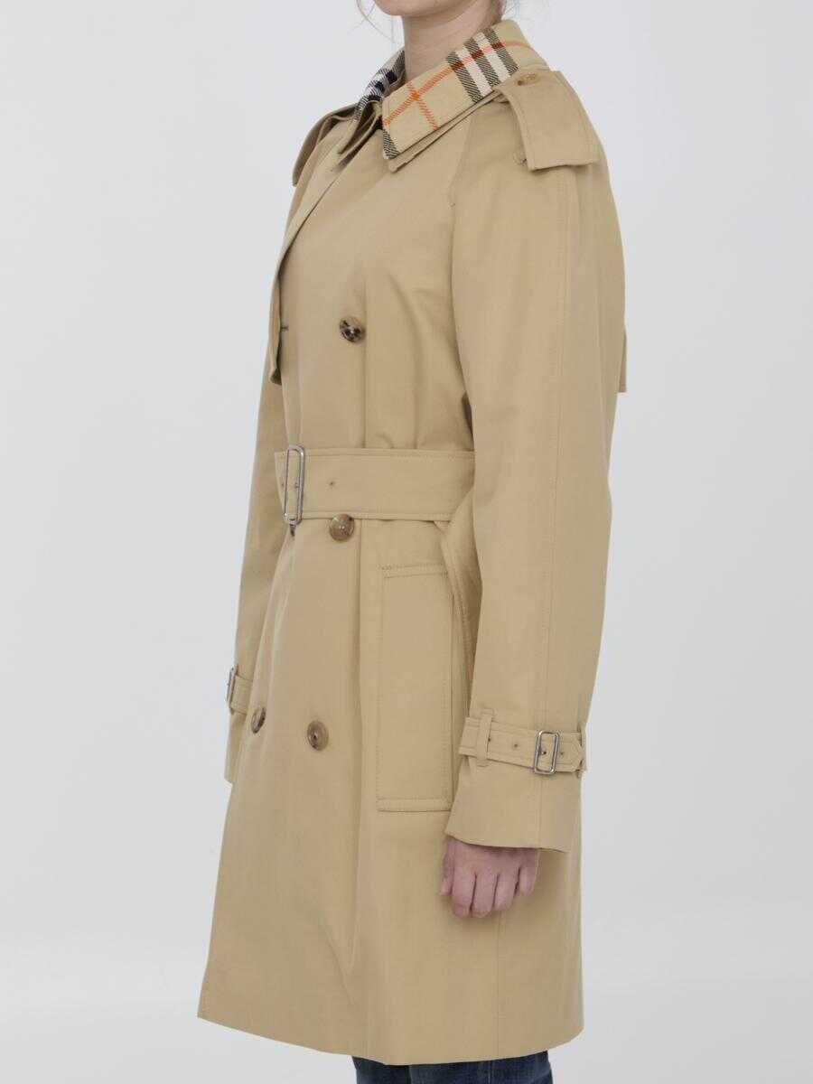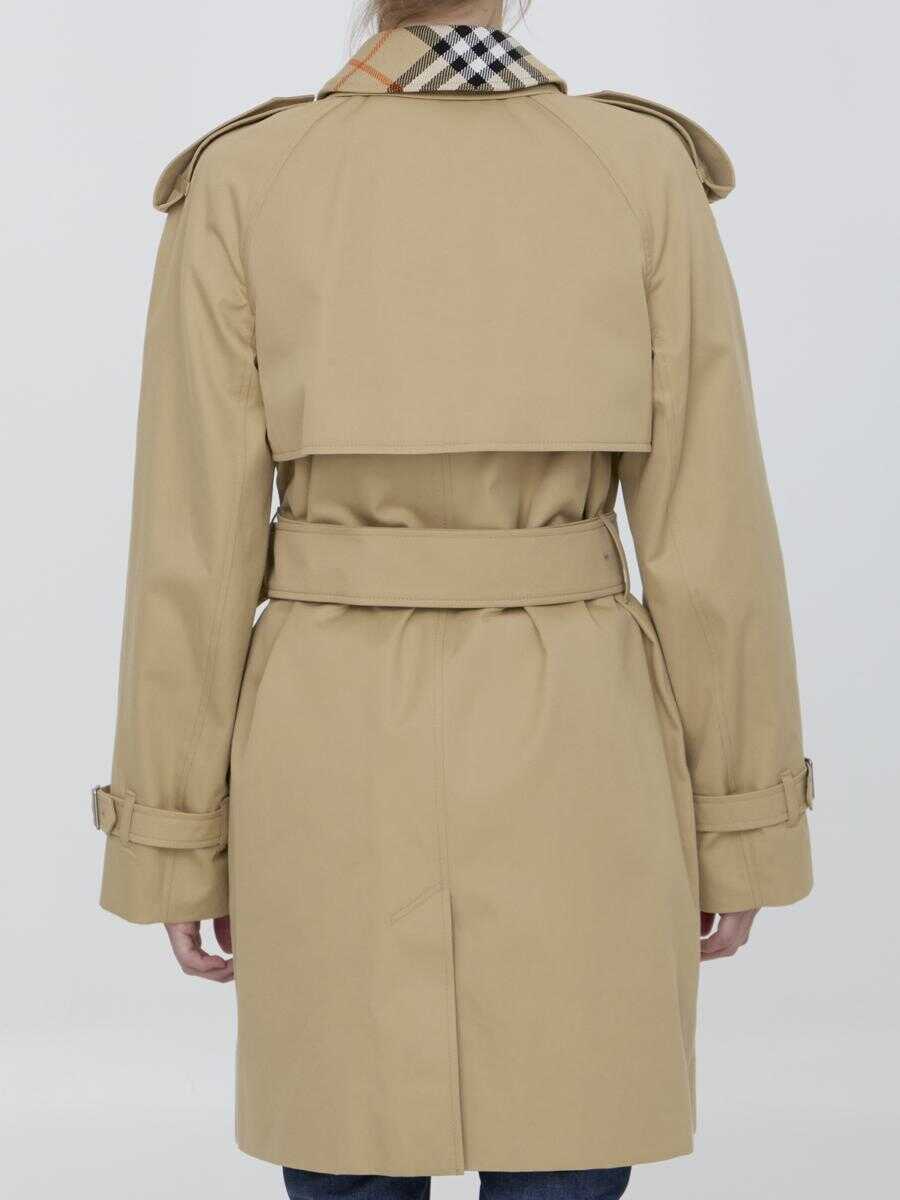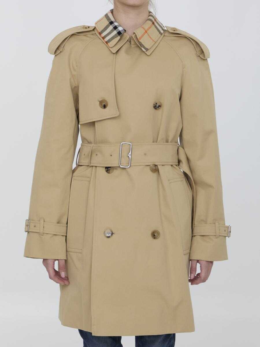 Raincoat in beige cotton with detachable Check insert on collar. It features double pointed collar, epaulettes, double-breasted button closure, detachable belt at waist, two side welt pockets and belted cuffs. Regular fit.