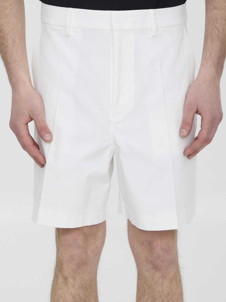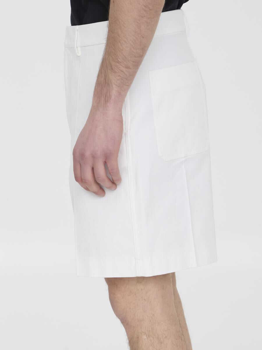 Valentino bermuda shorts in white stretch cotton canvas with rubberized V Detail at the back. It features zip, button and hook-and-eye closure, two side welt pockets, two rear patch pockets and belt loops. Regular fit.