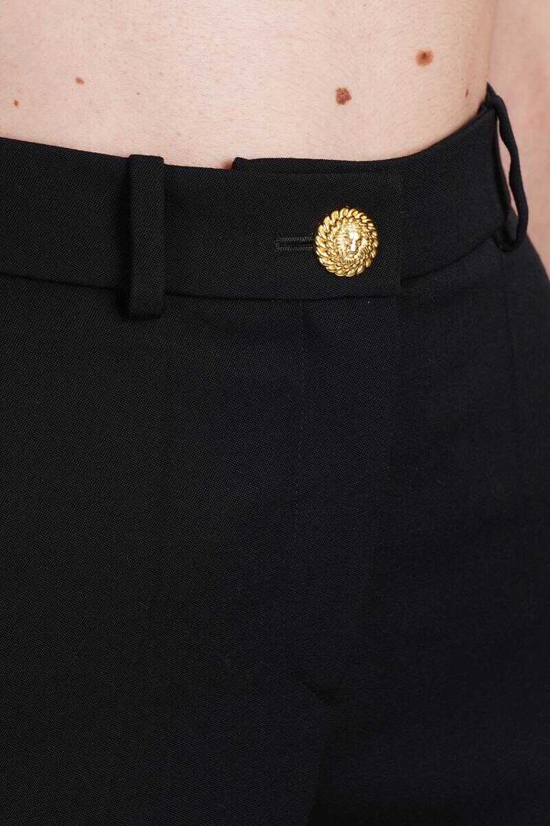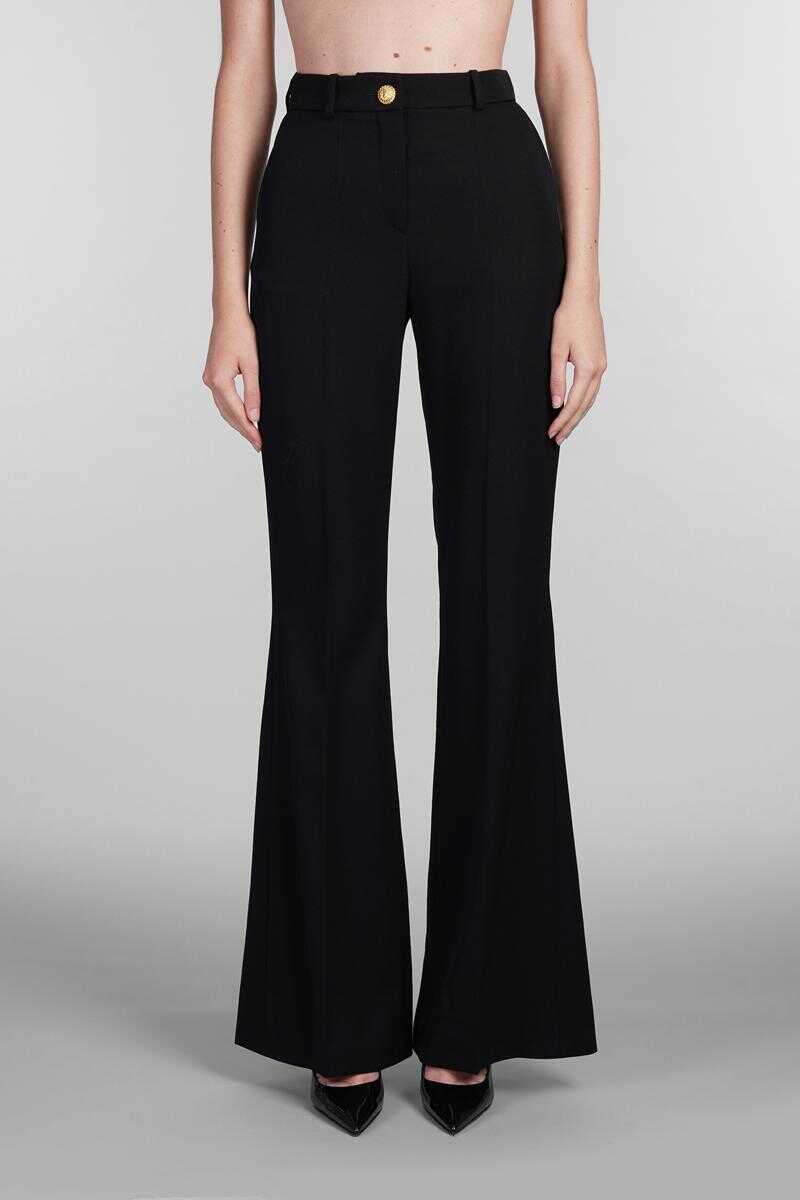 Pants in black wool, button closure, belt loops, side pockets, flared, 100% Virgin Wool, Made in Slovakia