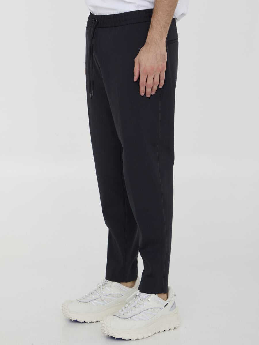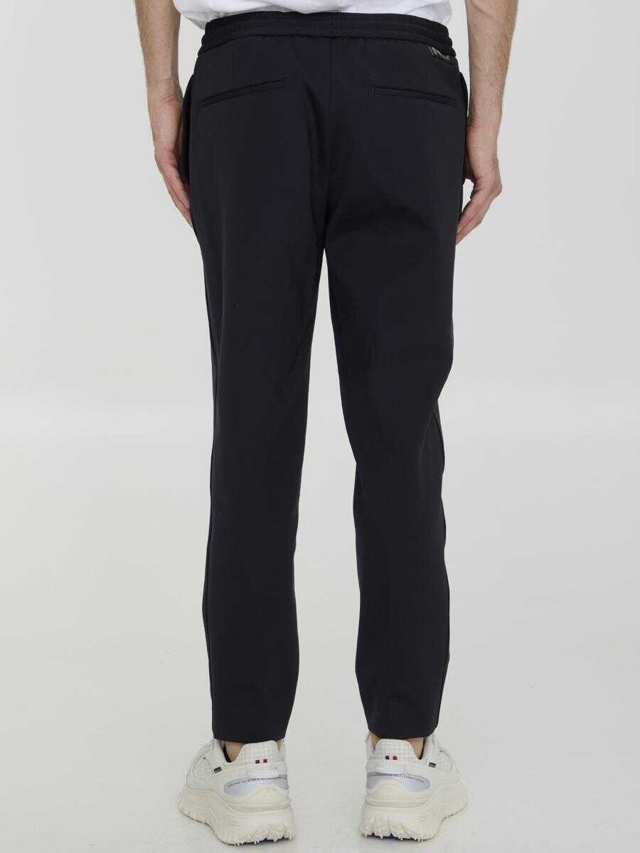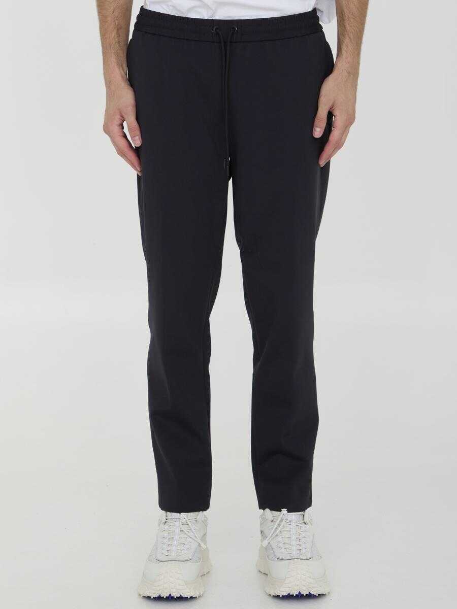 Black technical nylon pants. It features elasticated waistband with drawstring, two side welt pockets, two rear welt pockets and rear Moncler label. Regular fit.