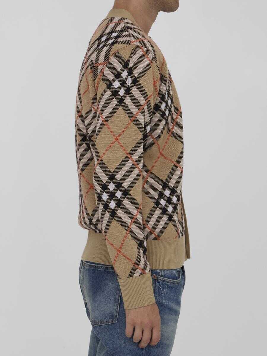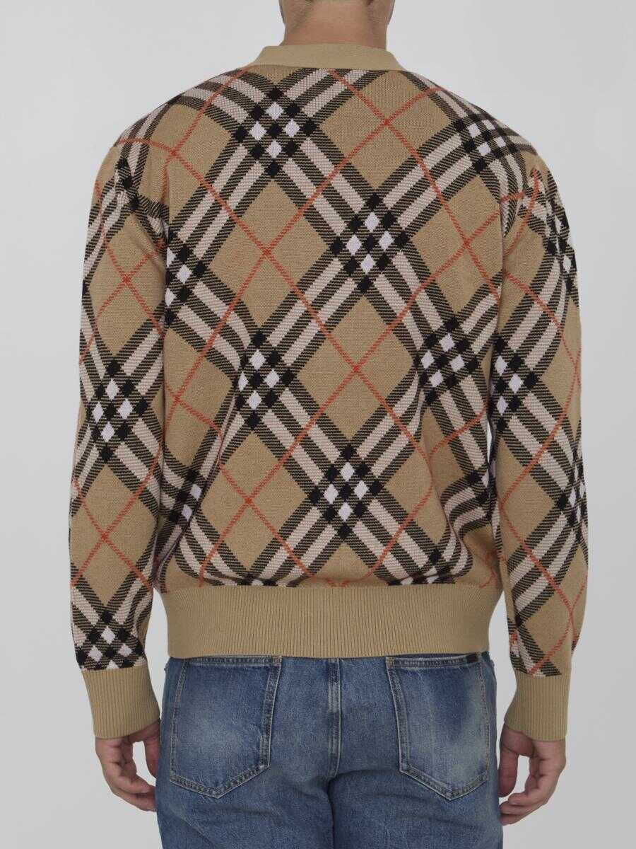 Cardigan in wool and mohair blend with Burberry Check motif. It features V-neckline, front button closure and ribbed trims. Relaxed fit.