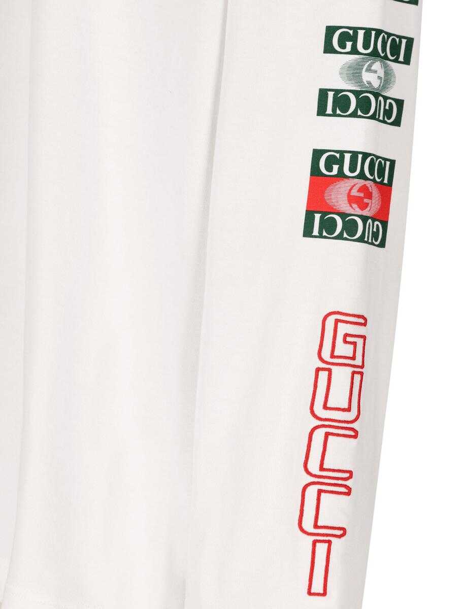 - Material: 100% cotton - Color: white - Other details: Gucci lettering on the fart - Made in Italy - Item number: 784364XJGRB9074 - Regular fit -.