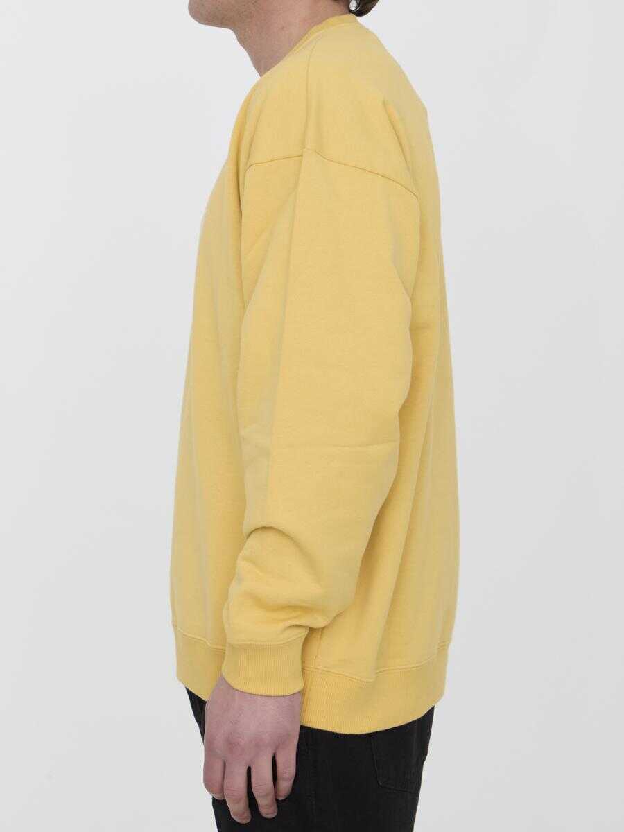 Long-sleeved crewneck sweatshirt in yellow cotton with Saint Laurent embroidery on the front. Ribbed neck, cuffs and hem. Wide fit.