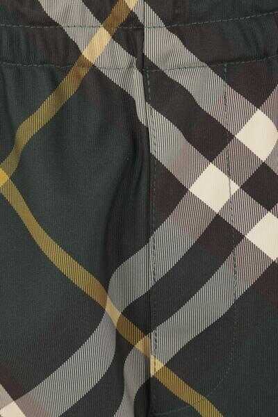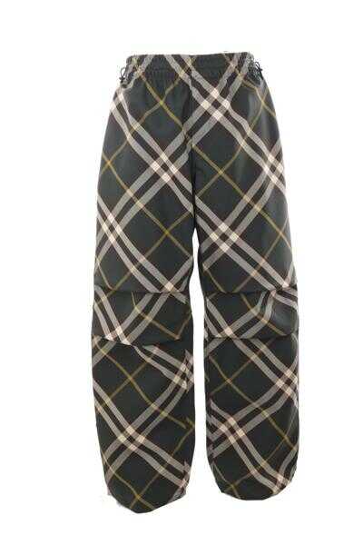Burberry's loose-fit pants crafted in green nylon twill with contrasting Check print. Featuring elasticated waistband, multiple pockets, pleats on the knees, drawstring at waist / at hem. The design is completed by the unmistakable Equestrian Knight patch at back pocket.