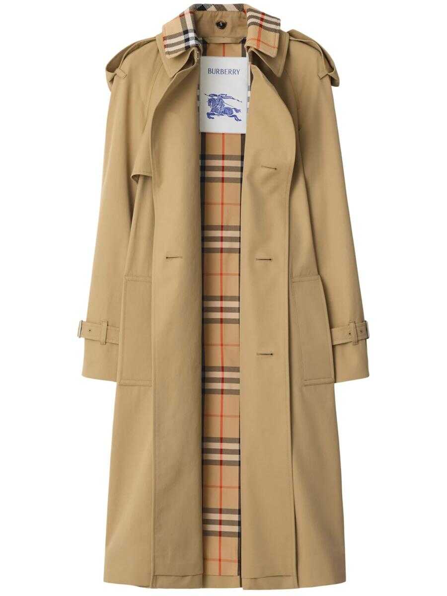 Long gabardine trench coat inspired by Burberry's Heritage designs. Made in England, it features a regular fit and a detachable jacquard collar with Burberry Check pattern.