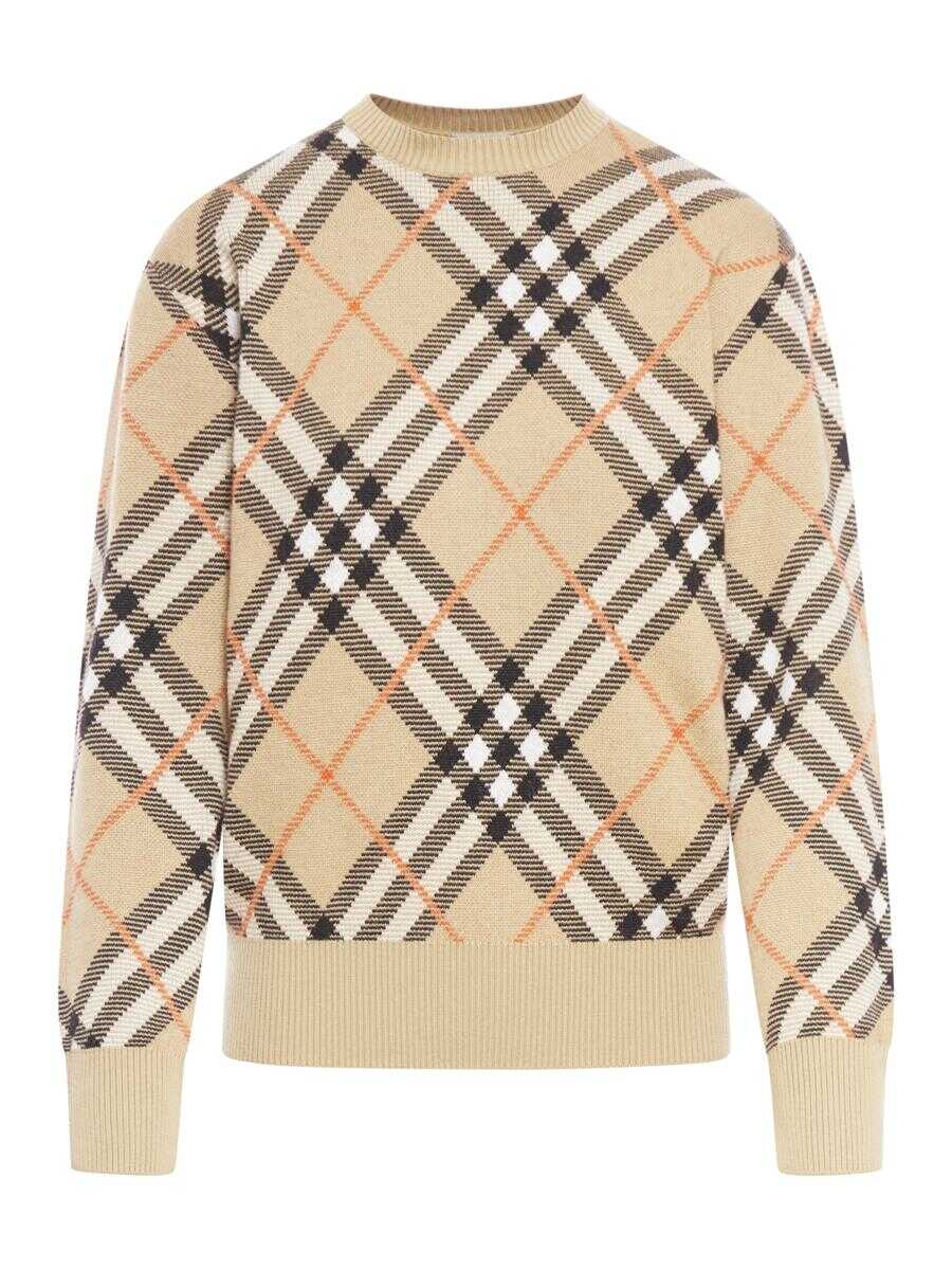 - Lightweight wool and mohair blend sweater with knitted Burberry Check