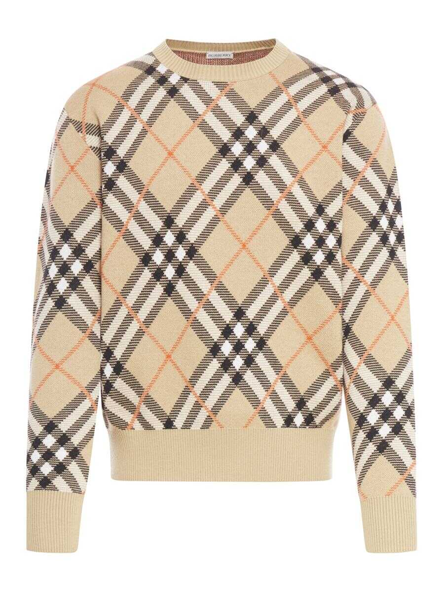 - Lightweight wool and mohair blend sweater with knitted Burberry Check - Ribbed finishes - Comfortable fit: a wider cut than the regular fit