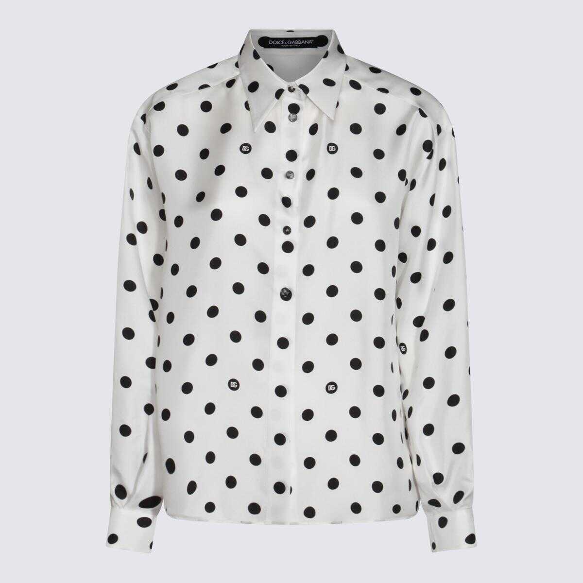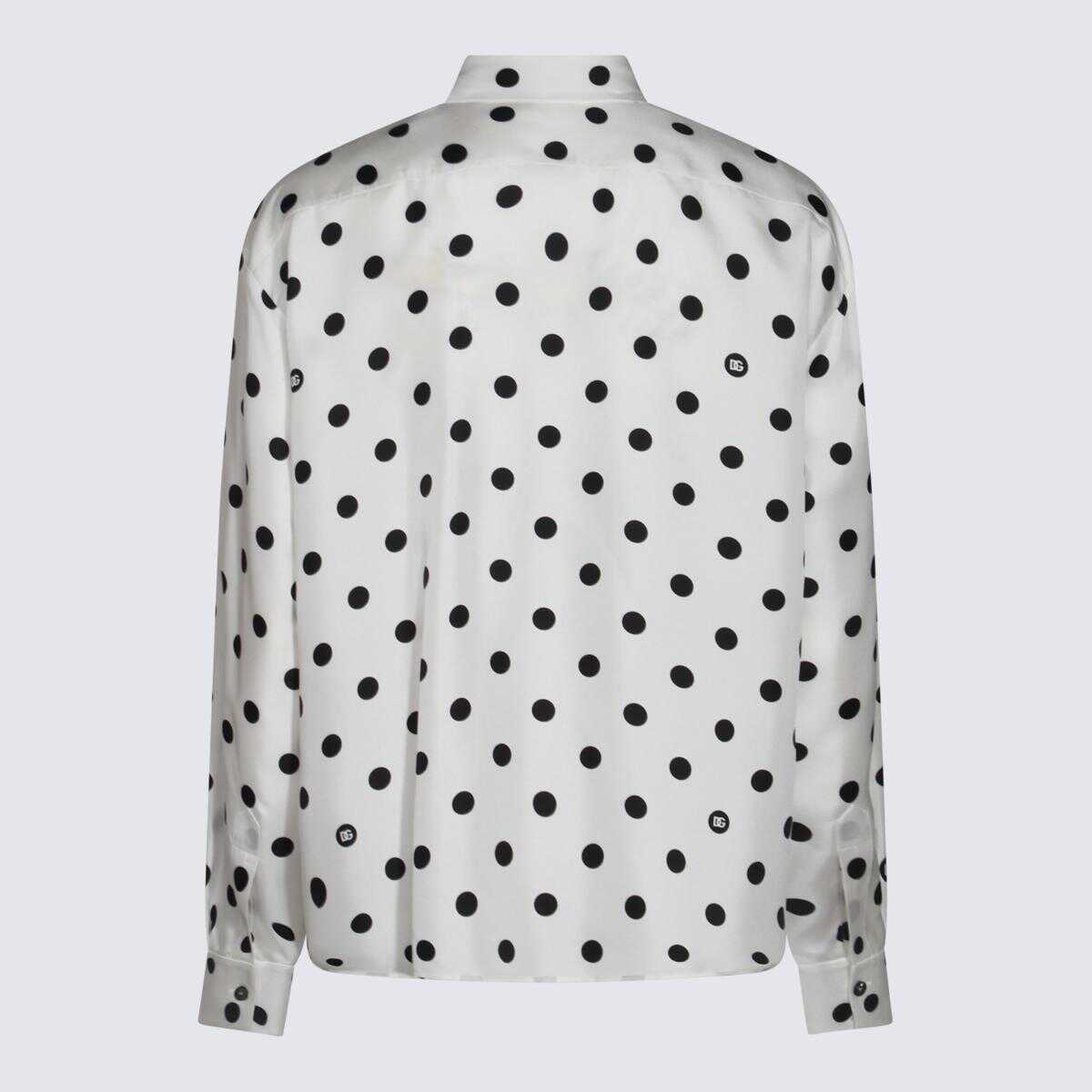 White silk shirt from Dolce&Gabbana featuring long sleeves, shirt collar, buttons fastening, all over pois motif and regular vestibility.