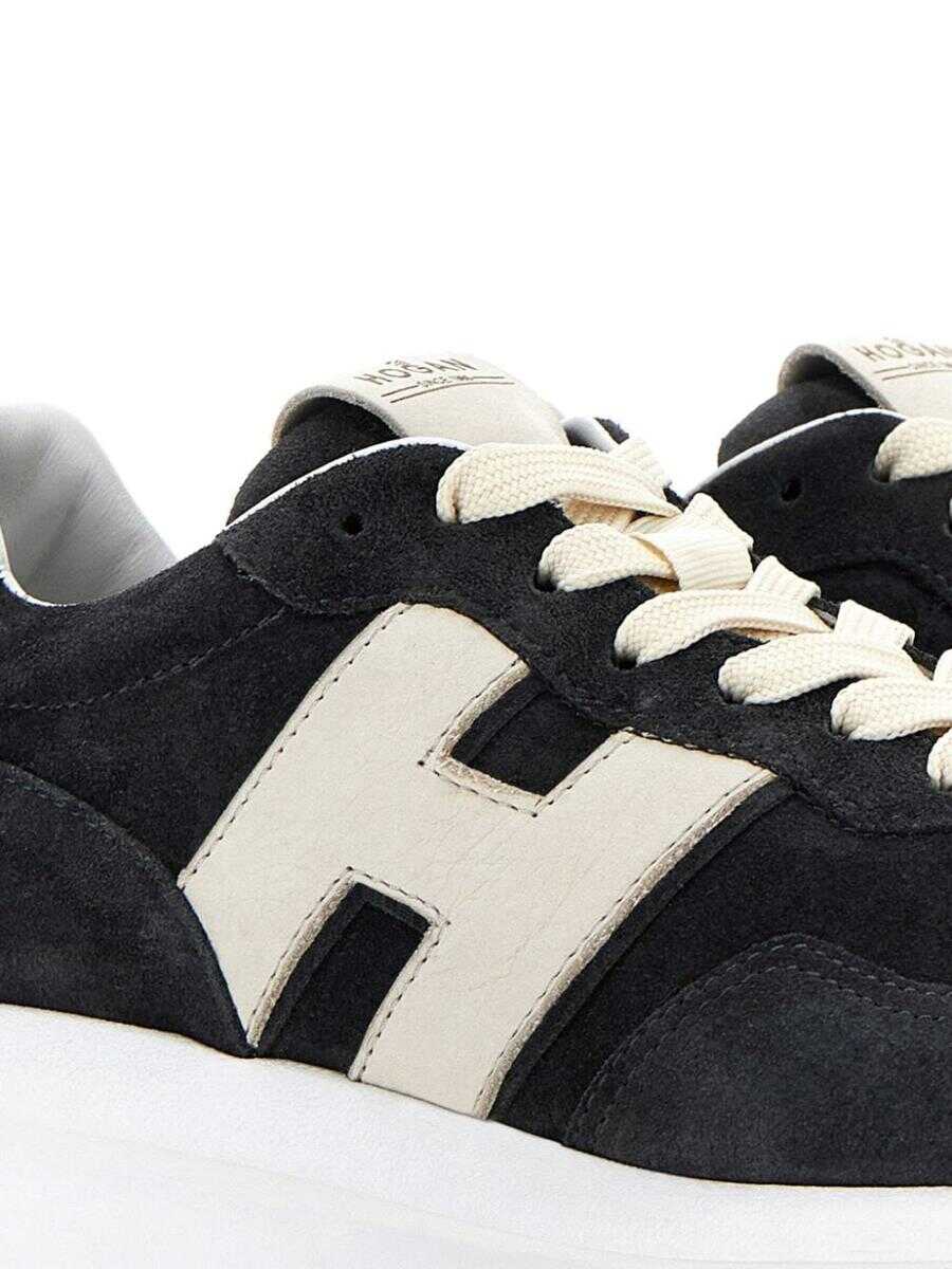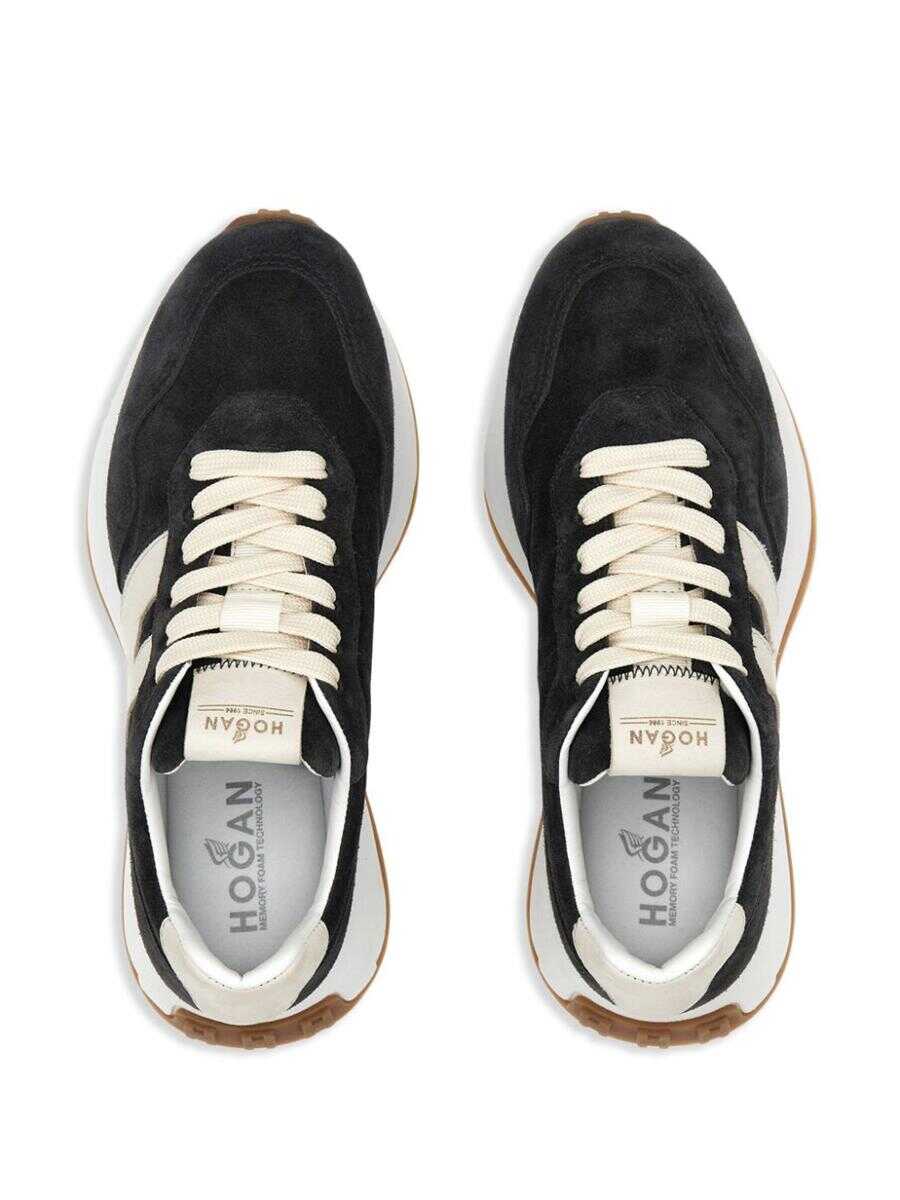 black calf leather/suede round toe logo-debossed tongue padded ankle branded cushioned insole branded chunky rubber sole front lace-up fastening