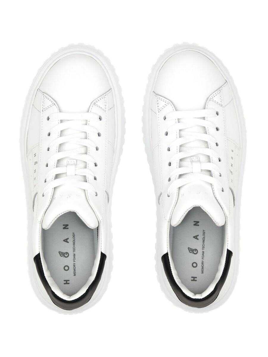 white/black calf leather panelled design logo print to the side perforated detailing contrasting heel counter round toe front lace-up fastening branded insole rubber sole