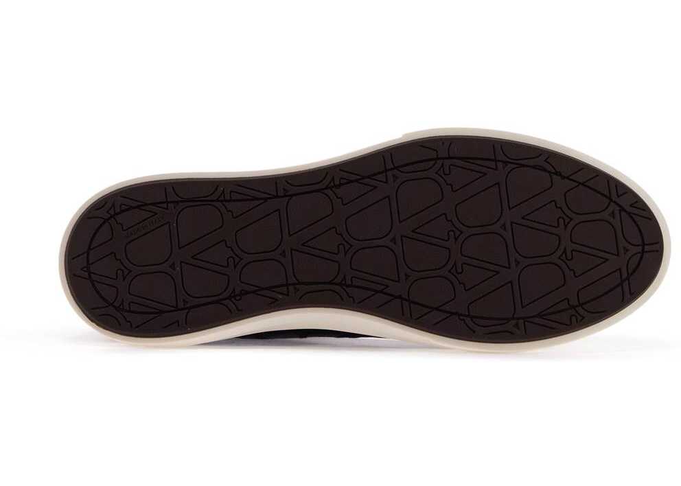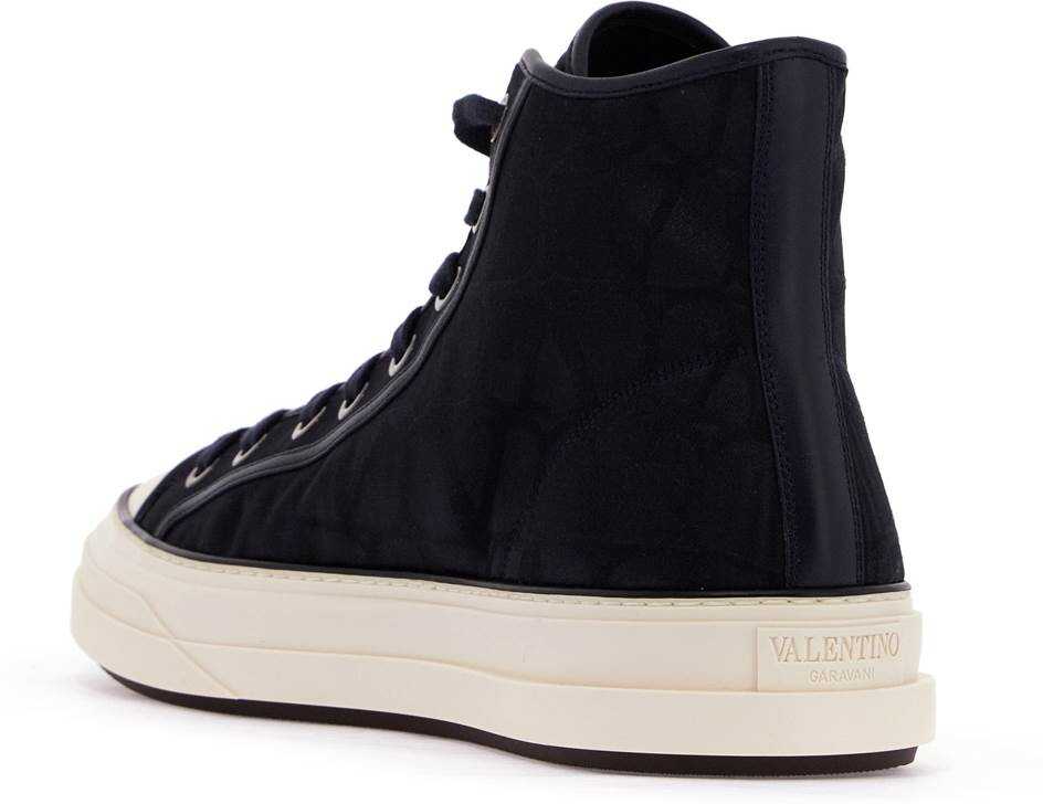 Totaloop high-top sneakers by Valentino Garavani made of shiny-finished Toile Iconographe with leather details and logo patch on tongue. Fabric lining with removable insole, rubber sole featuring embossed monogram pattern on the bottom. Supplied with spare laces.
