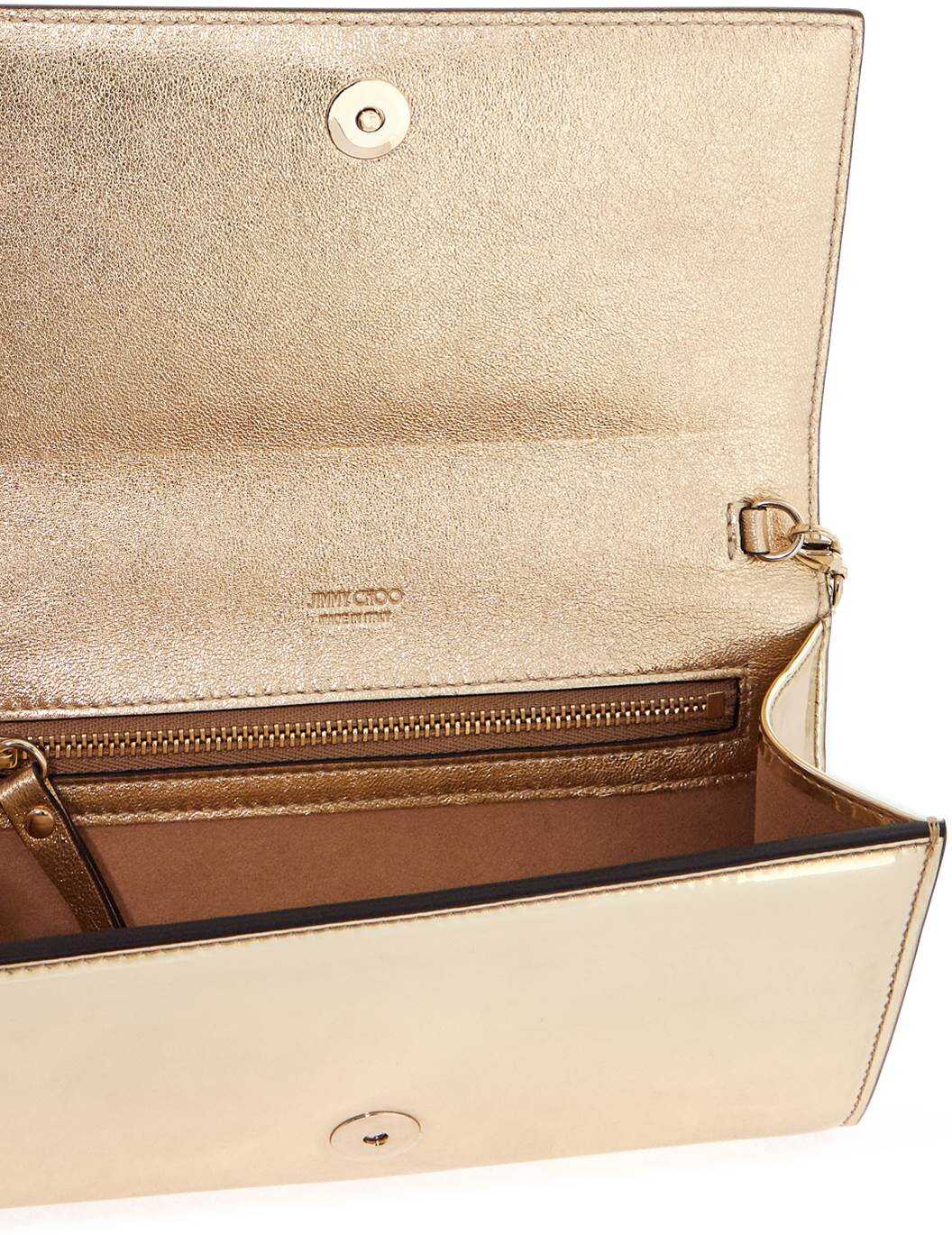 The Avenue mini shoulder bag by Jimmy Choo is made of mirrored effect material, with a silver metal monogram applied on the flap. It features a magnetic closure, laminated interior and microfiber suede lining with a zip pocket, four credit card slots and a slip pocket. The removable chain handle adds versatility to this stylish accessory.