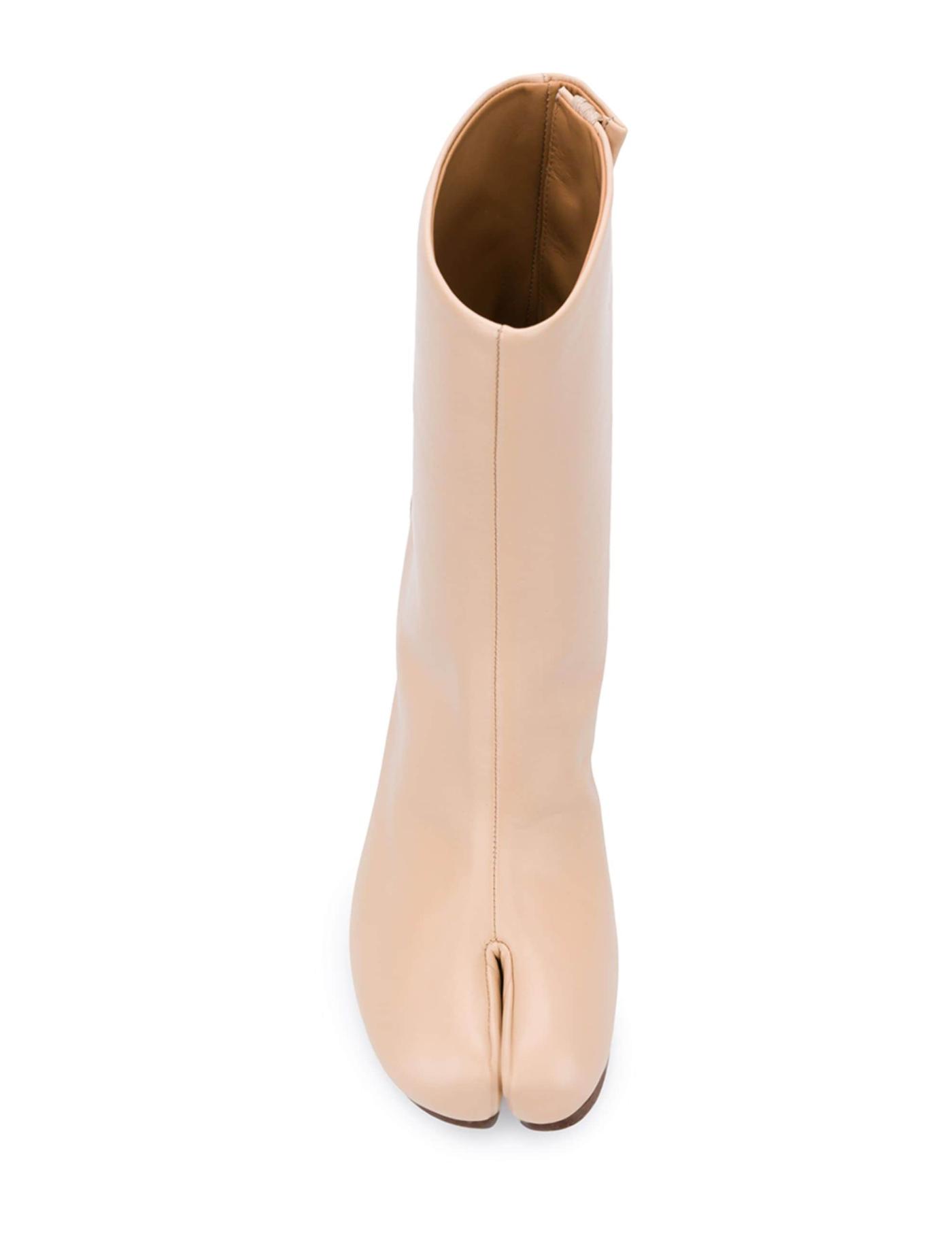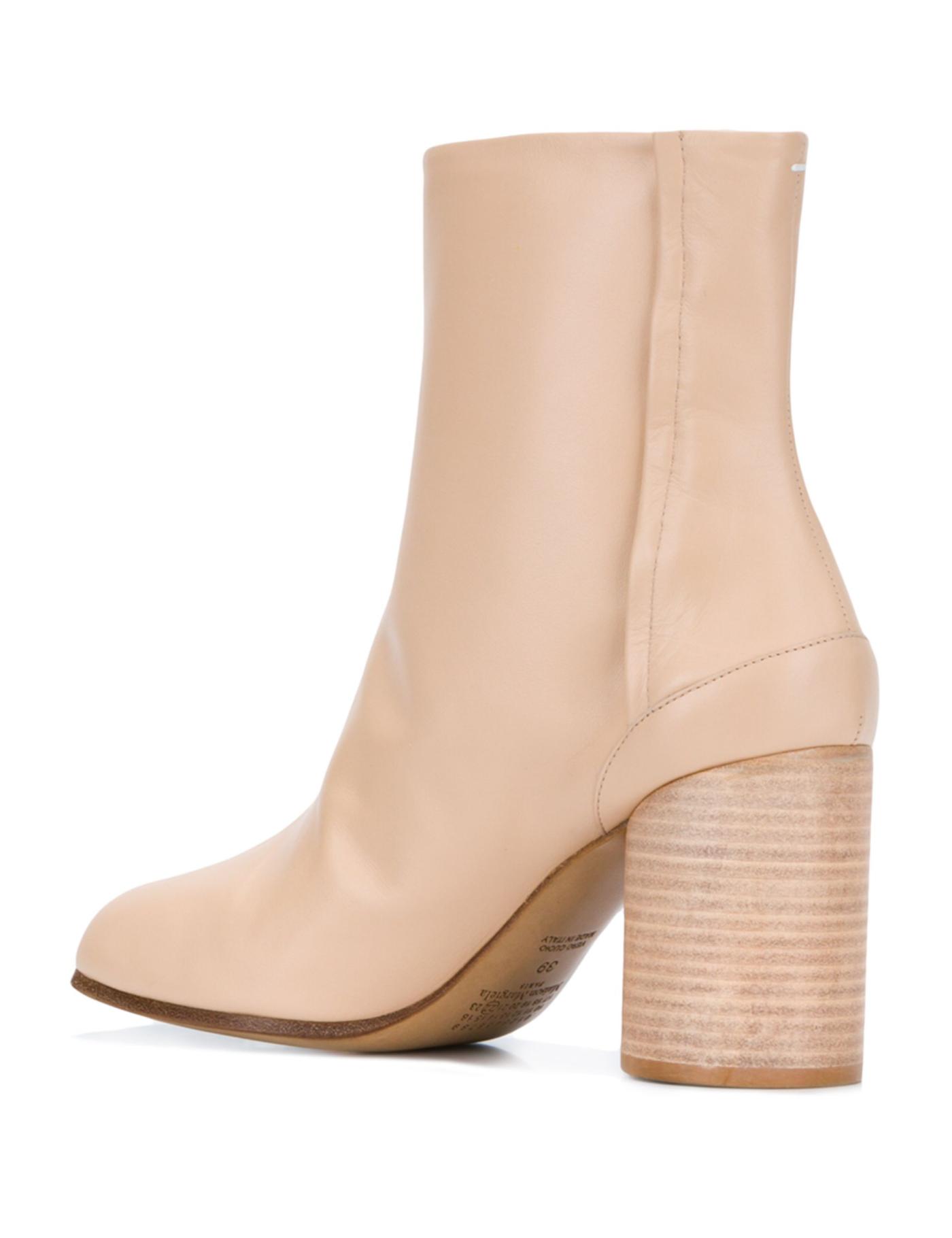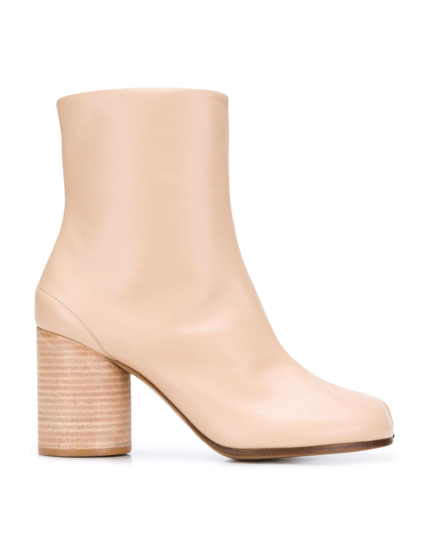 - Enamoured with the idiosyncratic; enigmatic Belgian designer Martin Margiela set up his eponymous label in 1988 with a focus on progressive design that reinterprets the social norm. Carefully constructed in Italy from soft leather, these soft beige Tabi ankle boots from Maison Margiela feature a chunky heel, a concealed rear hook fastening and a signature cleft toe.