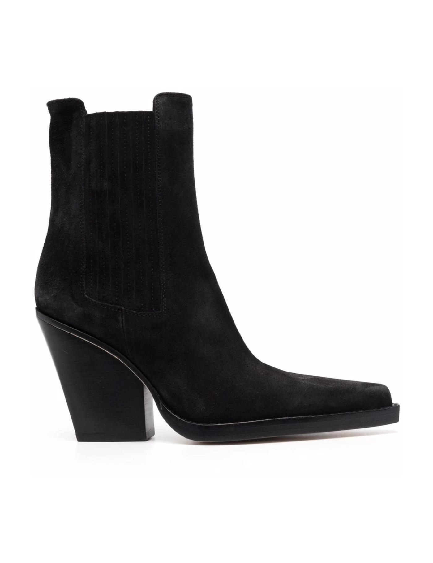 Crafted from leather in Italy, these Dallas boots are a prime example of Paris Texas concept of contrasts. In a black hue, this pair is punctuated by a bold high block heel.
