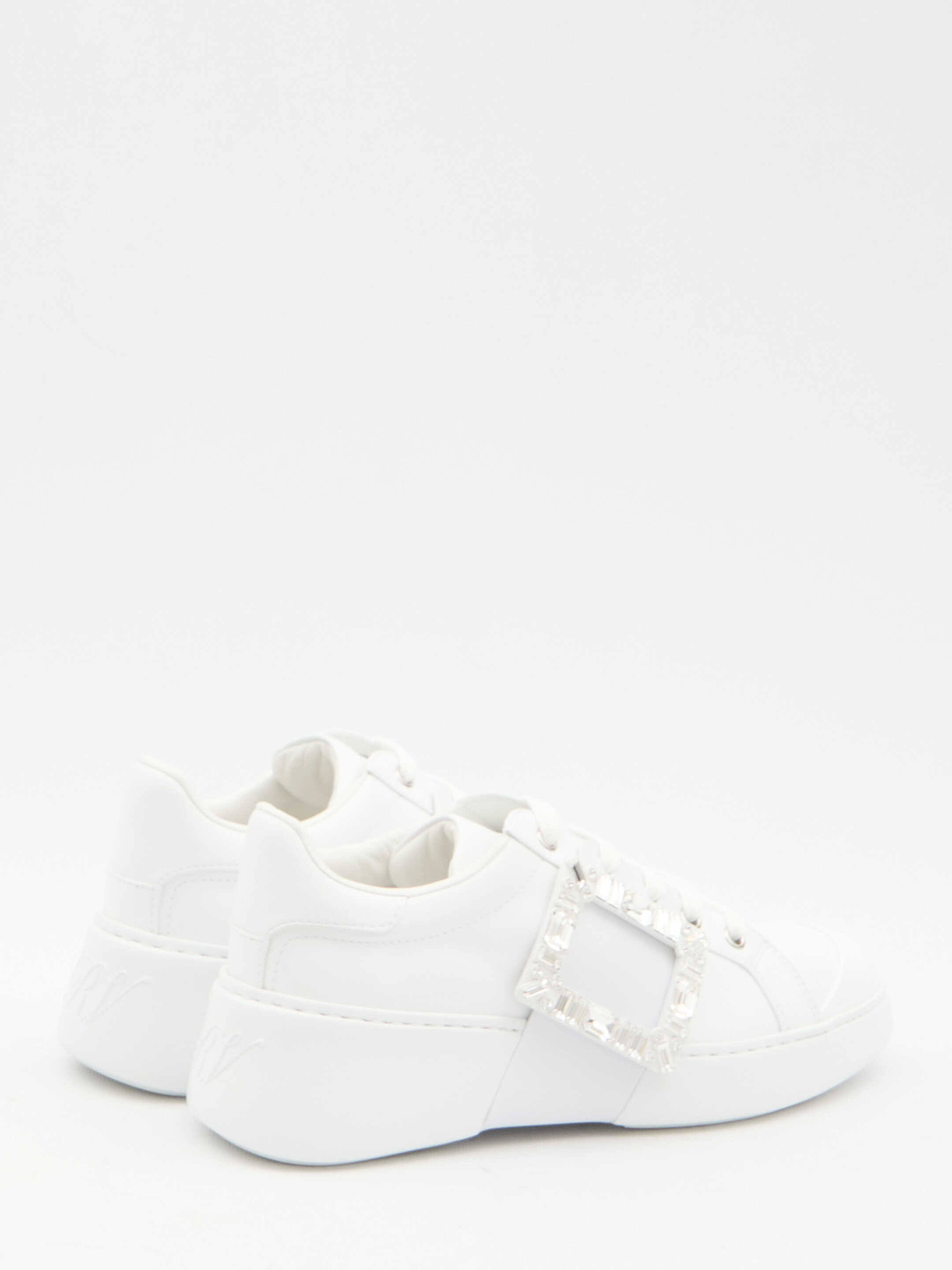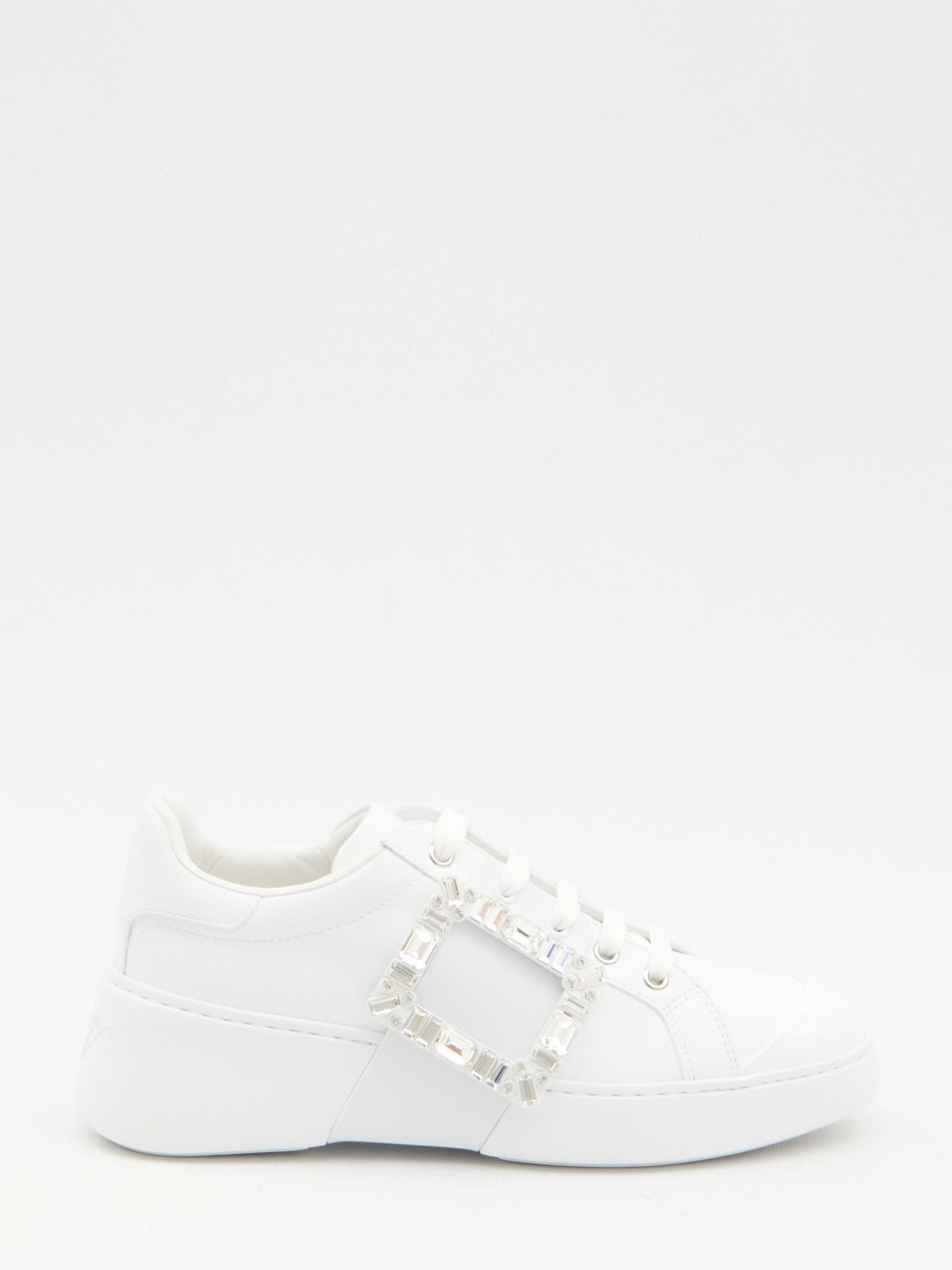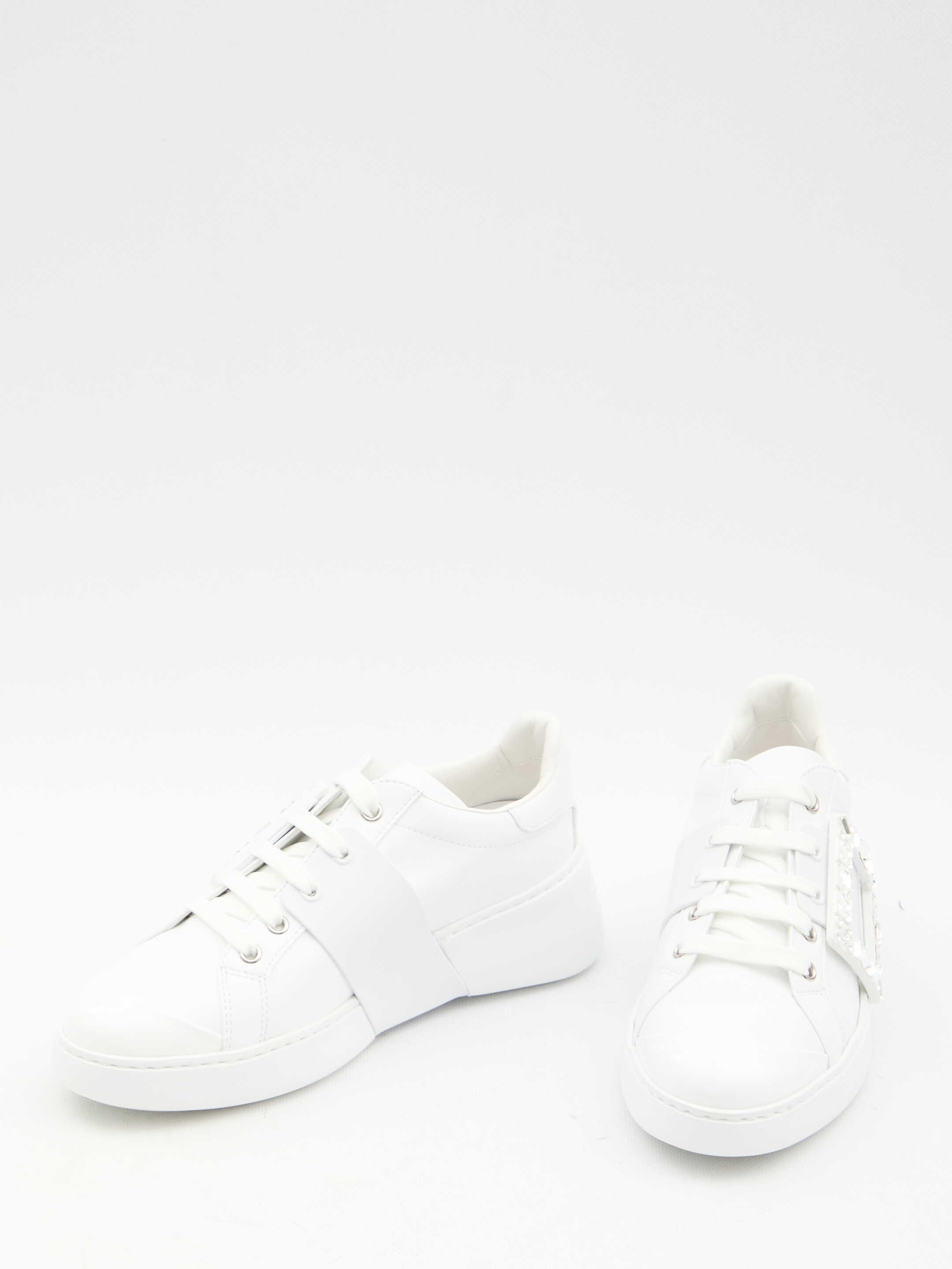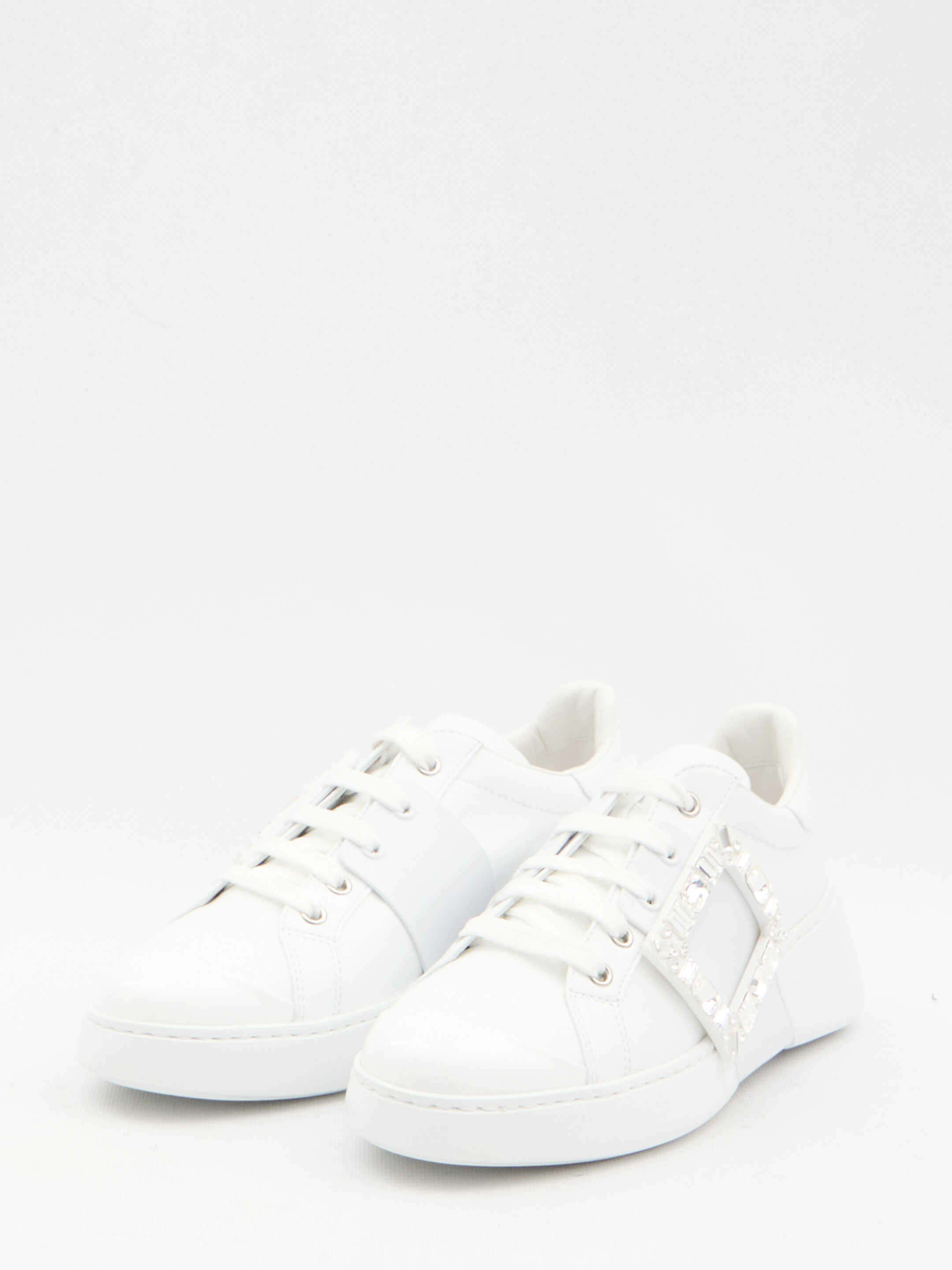 Viv' Skate sneakers in white nappa with patent leather inserts. They feature side crystal buckle, lace-up closure and rubber sole. Any leather imperfections are not to be considered manufacturing defects, but a peculiarity of the material.