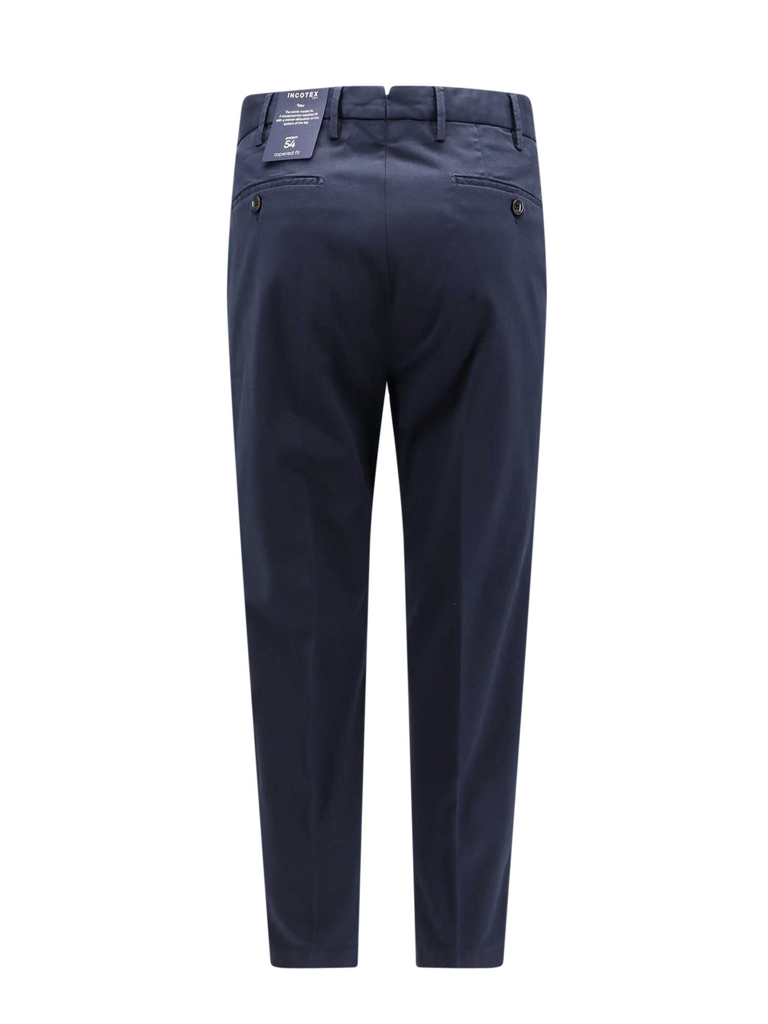 Zip and button closure, Welt pockets on the front and pockets with button on the back, Pinces detail, Tapered Fit, 97% cotton 3% elastane